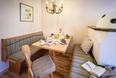 Appartement mit Balkon oder Terrasse, Vorraum mit Garderobe, Schlafzimmer mit Sitzecke, Wohnraum mit Esstisch, Kachelofen, Schlafcouch, komplett ausgestattete Küche. Badezimmer mit Duschbadewanne ode Dusche. Separates WC.