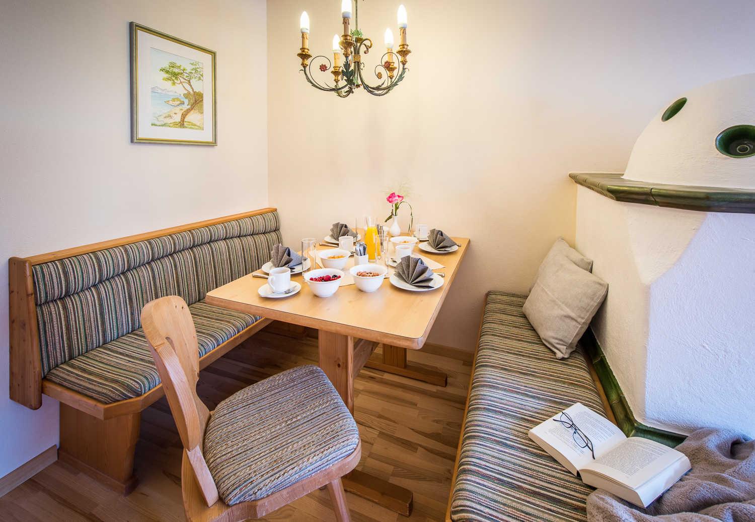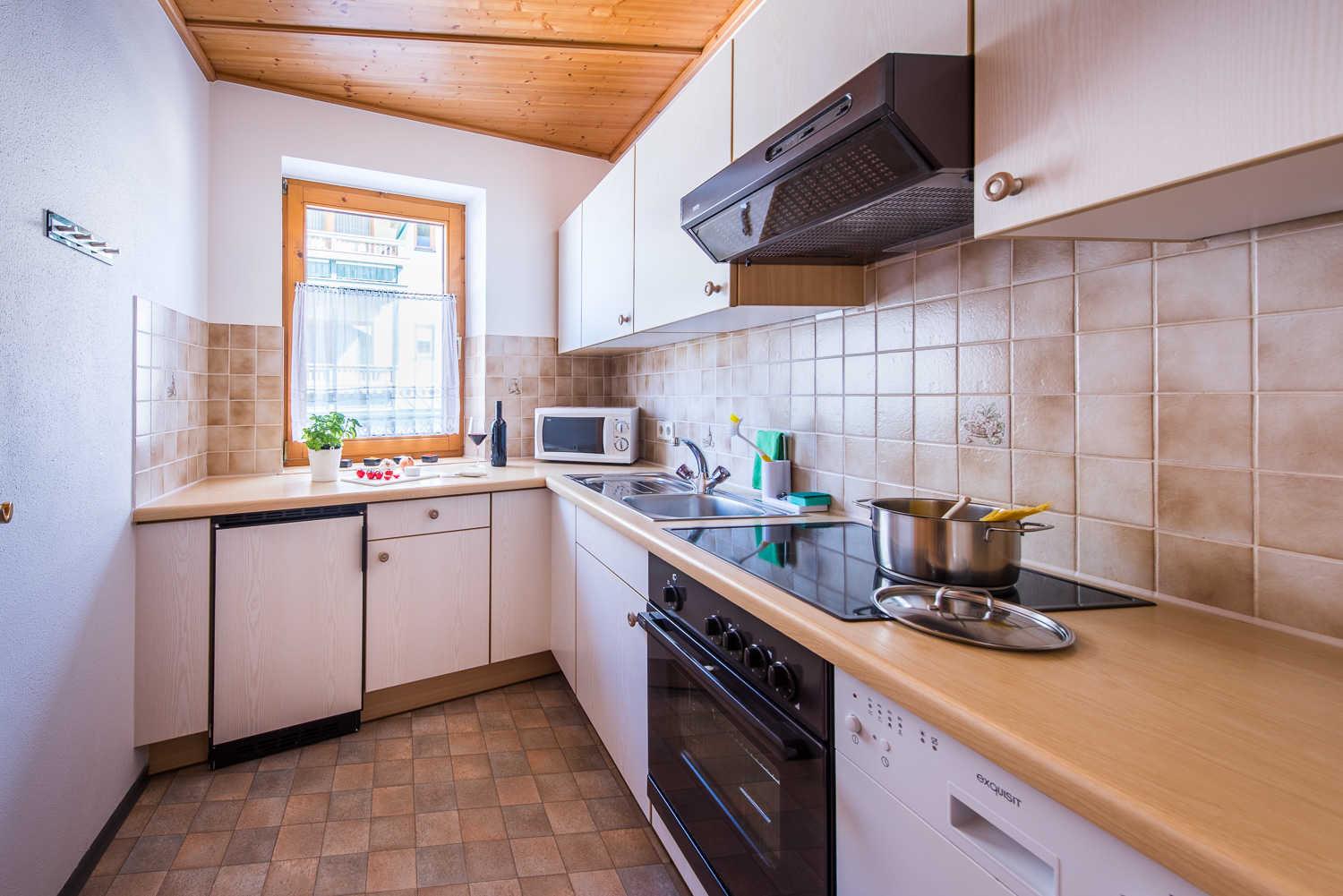 Unsere Appartements mit ein bis zwei Schlafzimmern sind alle mit dem Personenlift erreichbar und mit Parkettboden, Sat-TV, WLAN, Festnetztelefon und Safe ausgestattet. Die Wohnungen sind mit einer voll ausgestatteten Küche mit Mikrowelle, Filterkaffeemaschine, Wasserkocher, E-Herd mit Backrohr und Geschirrspüler sowie kompletter Geschirr- und Wäscheausstattung eingerichtet. Ein Rad- und Skiraum mit Schuhtrockner und Parkplatz sind