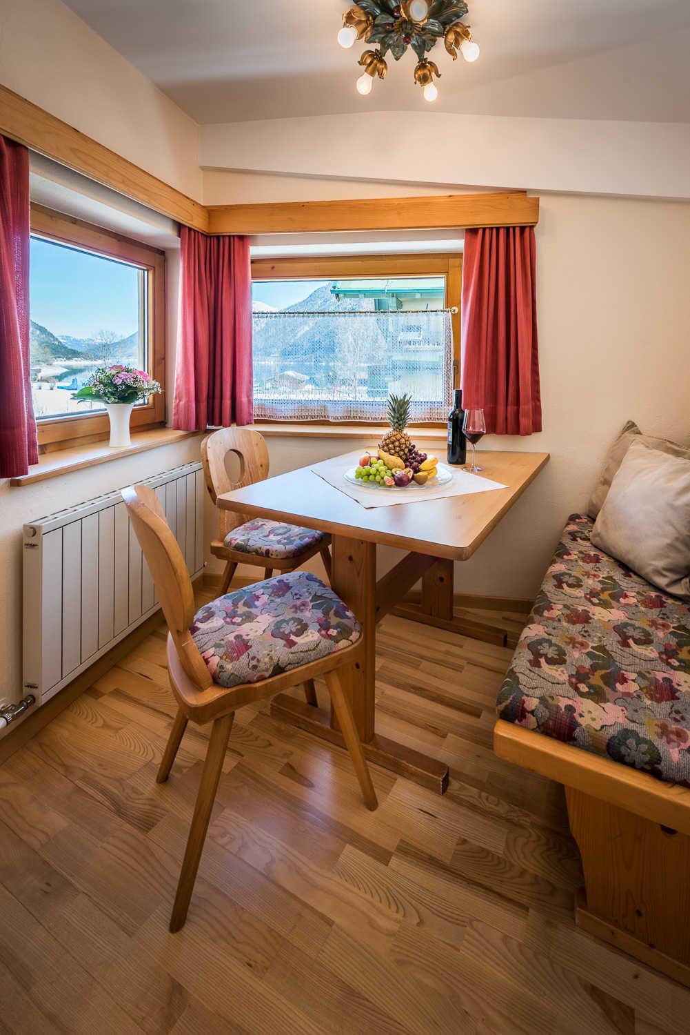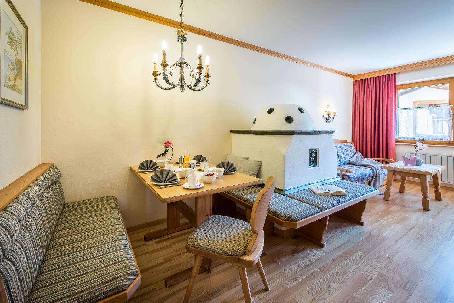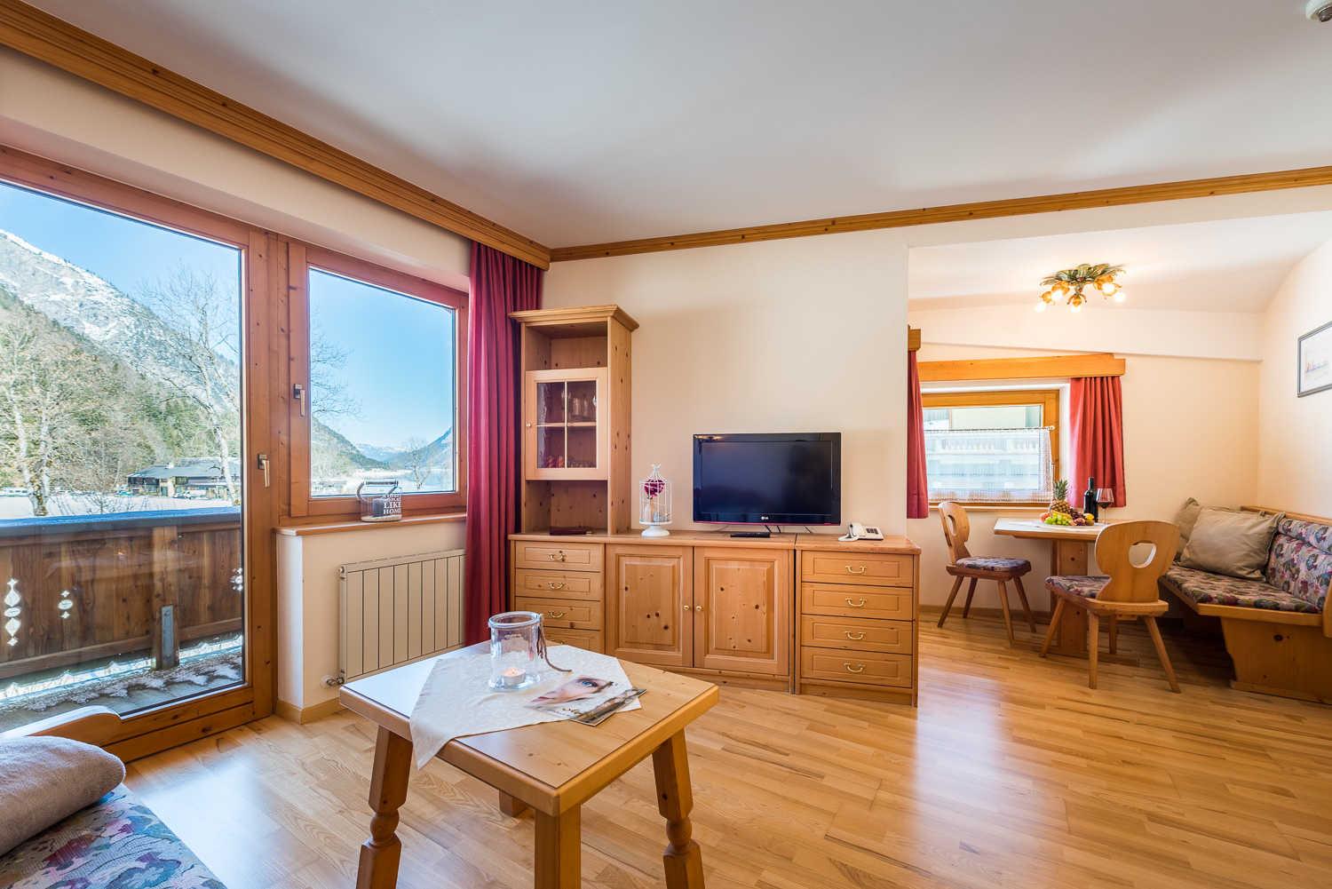 Unsere Appartements mit ein bis zwei Schlafzimmern sind alle mit dem Personenlift erreichbar und mit Parkettboden, Sat-TV, WLAN, Festnetztelefon und Safe ausgestattet. Die Wohnungen sind mit einer voll ausgestatteten Küche mit Mikrowelle, Filterkaffeemaschine, Wasserkocher, E-Herd mit Backrohr und Geschirrspüler sowie kompletter Geschirr- und Wäscheausstattung eingerichtet. Ein Rad- und Skiraum mit Schuhtrockner und Parkplatz sind