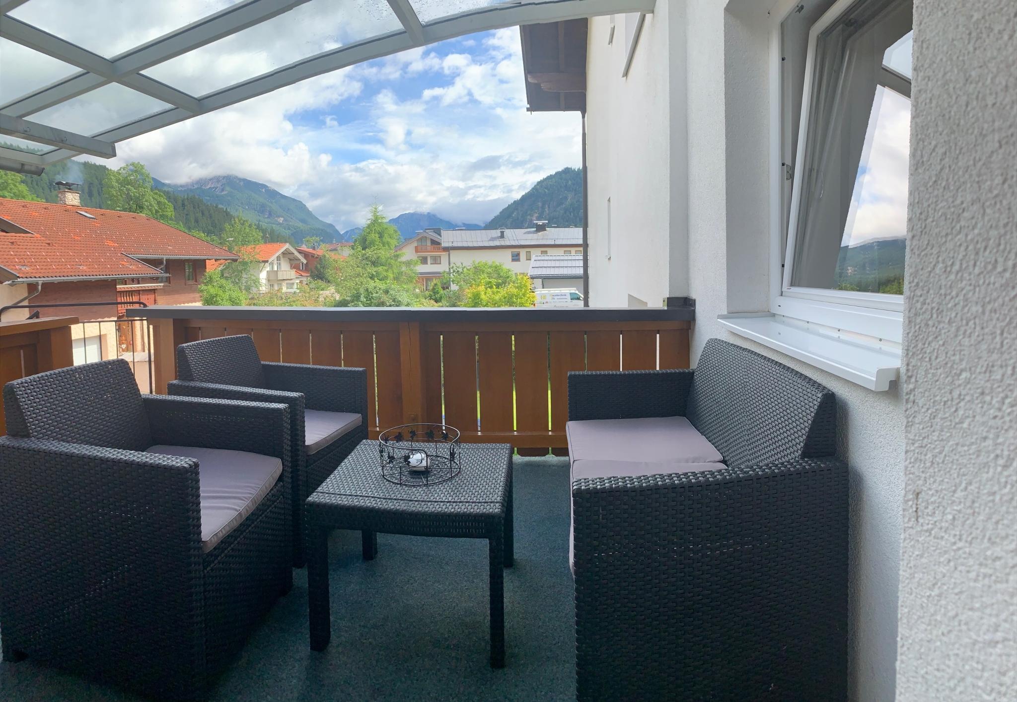 Diese großzügige Ferienwohnung mit unserer neuen ALPIN KOMFORT Ausstattung besteht aus 2 Schlafzimmern mit jeweils 1 Doppelbett, 1 Badezimmer mit Dusche und WC, 1 hochwertig ausgestattete Wohnküche mit Essplatz und 1 Wohnbereich mit gemütlicher Lounge mit 1 Ohrensessel, 1 Hocker und einer Ausziehcouch für 2 vollwertige Schlafmöglichkeiten. Holz für den Kachelofen stellen wir Ihnen gerne kostenlos zur Verfügung. Eine Terrasse mit Wendeltreppe in den Garten ist ein sehr beliebter Frühstücksplatz im Sommer