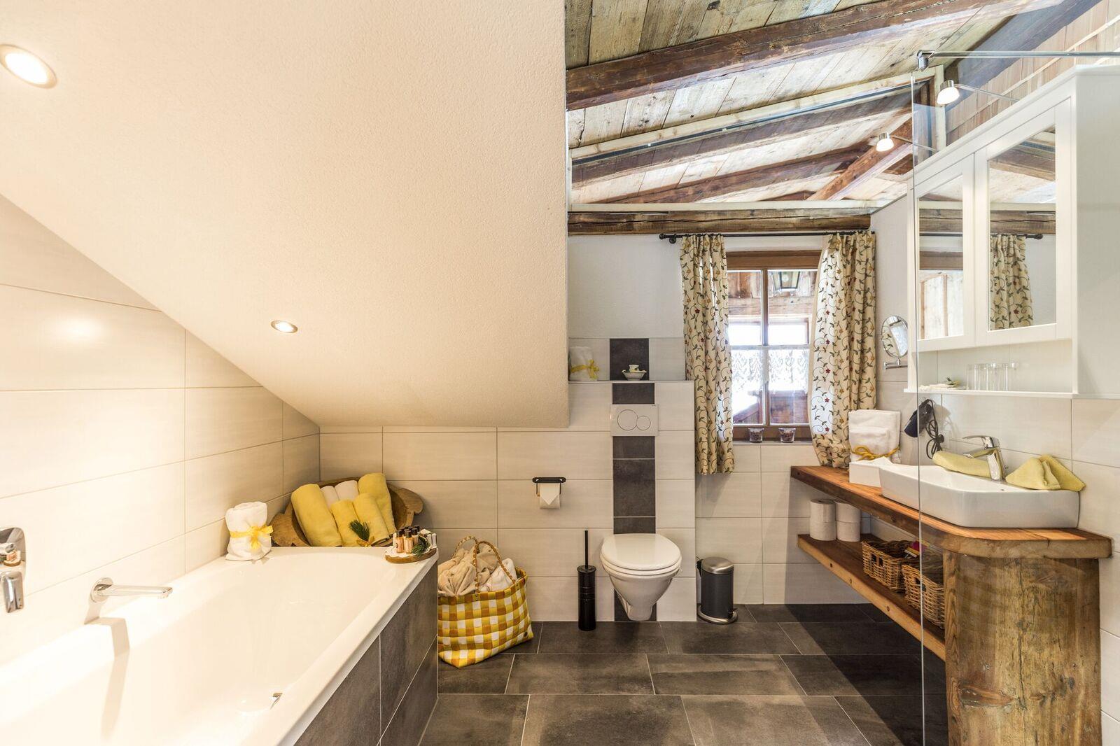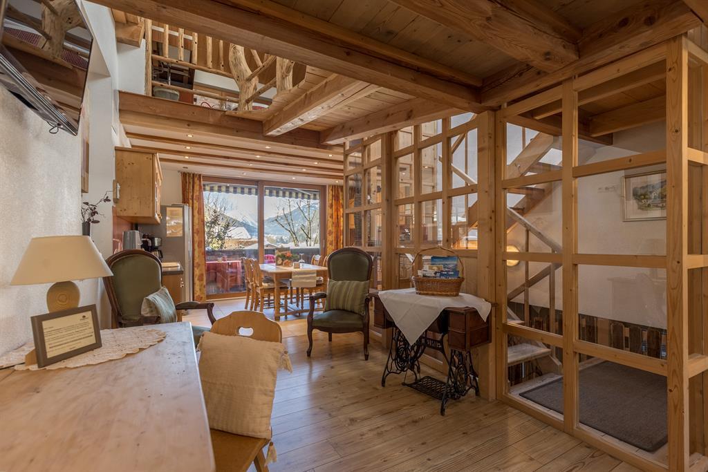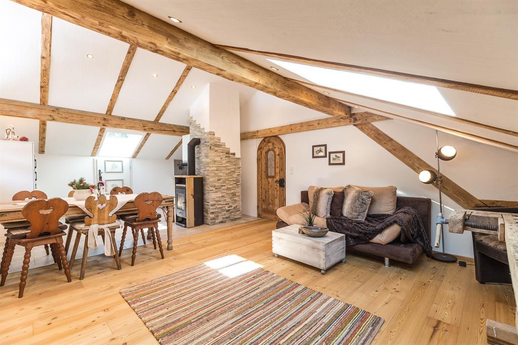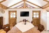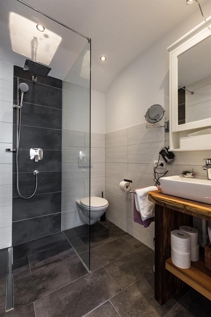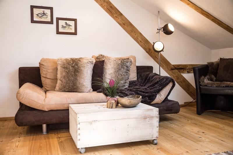 Über einen Stiegenaufgang auf der Hinterseite des Bauernhauses gelangen Sie direkt in unsere ca. 80 m² Ferienwohnung s´Neschtle im Dachgeschoss mit Balkon. 2 Doppelzimmer mit Sat-TV, 1 Badezimmer mit Dusche/WC, 1 Badezimmer mit Badewanne und Dusche/WC, eine voll ausgestattete Wohnküche mit einer weiteren Schlafmöglichkeit für die 5.+6. Person (ausziebares Doppelsofa) und Sat-TV. Der Küchenbereich ist mit reichlich Geschirr, Mikrowelle, Elektroherd, Backrohr, Wasserkocher, Kaffeevollautomatmaschine, Soda-Stream und Kühlschrank ausgestattet.
