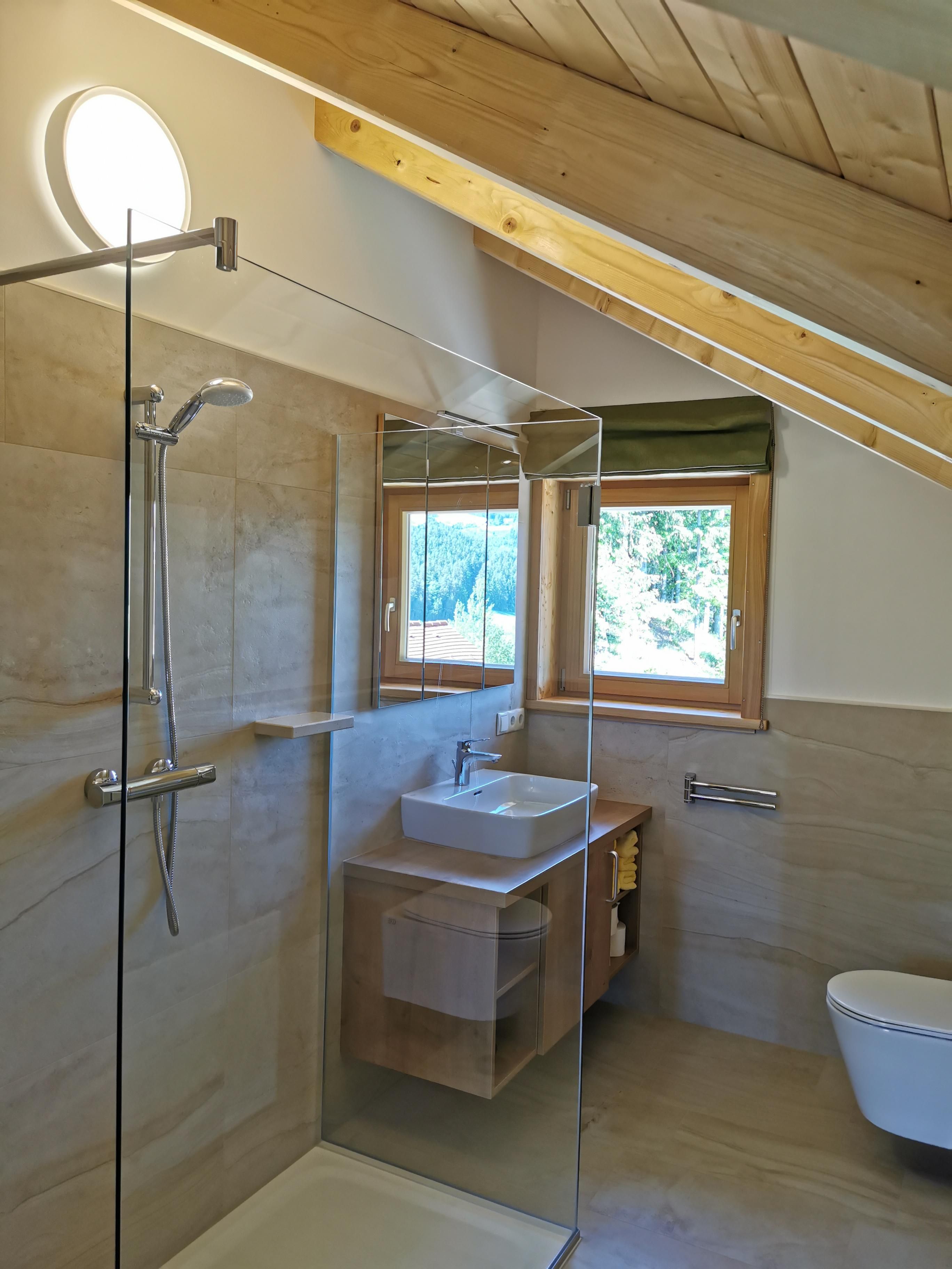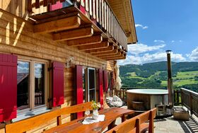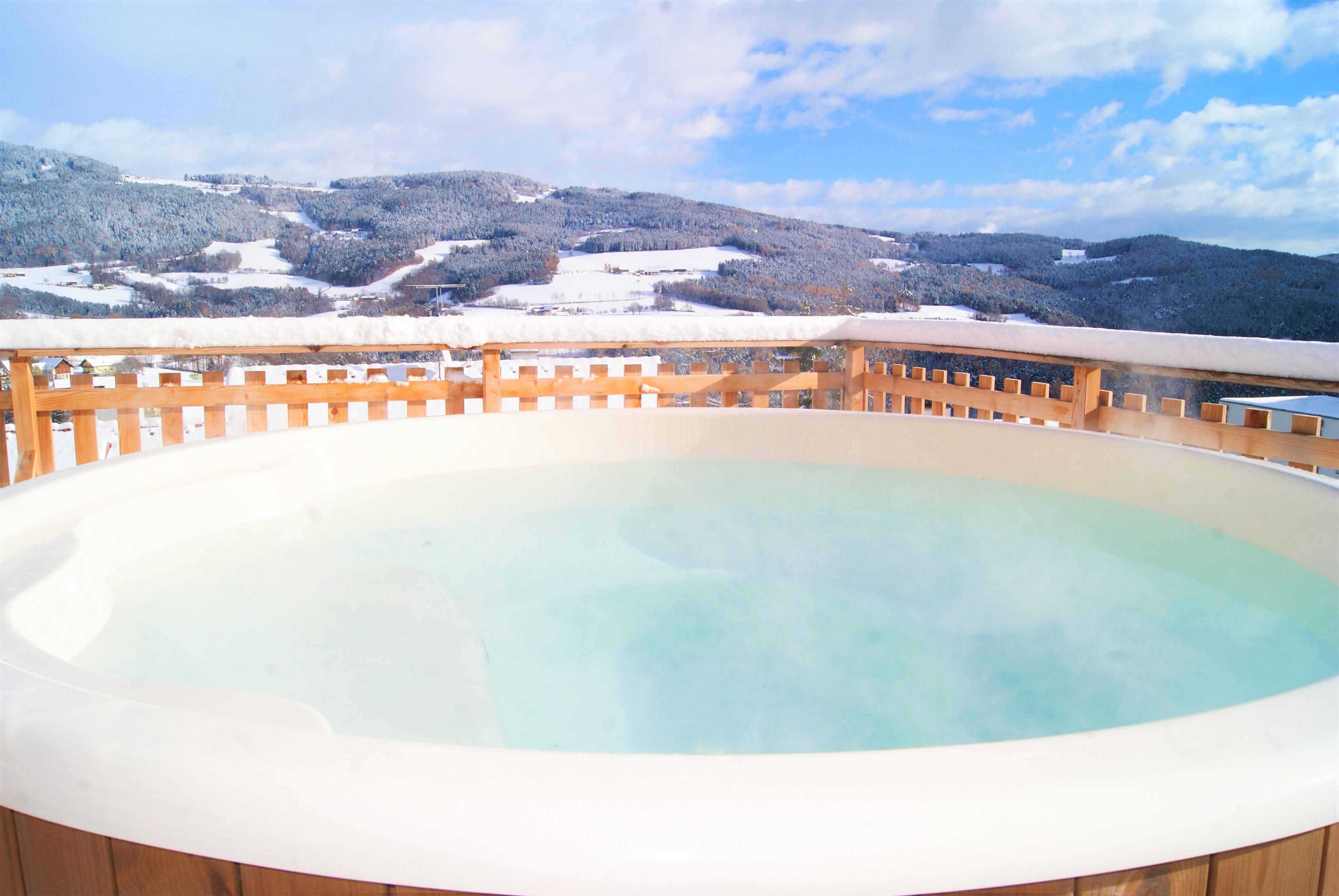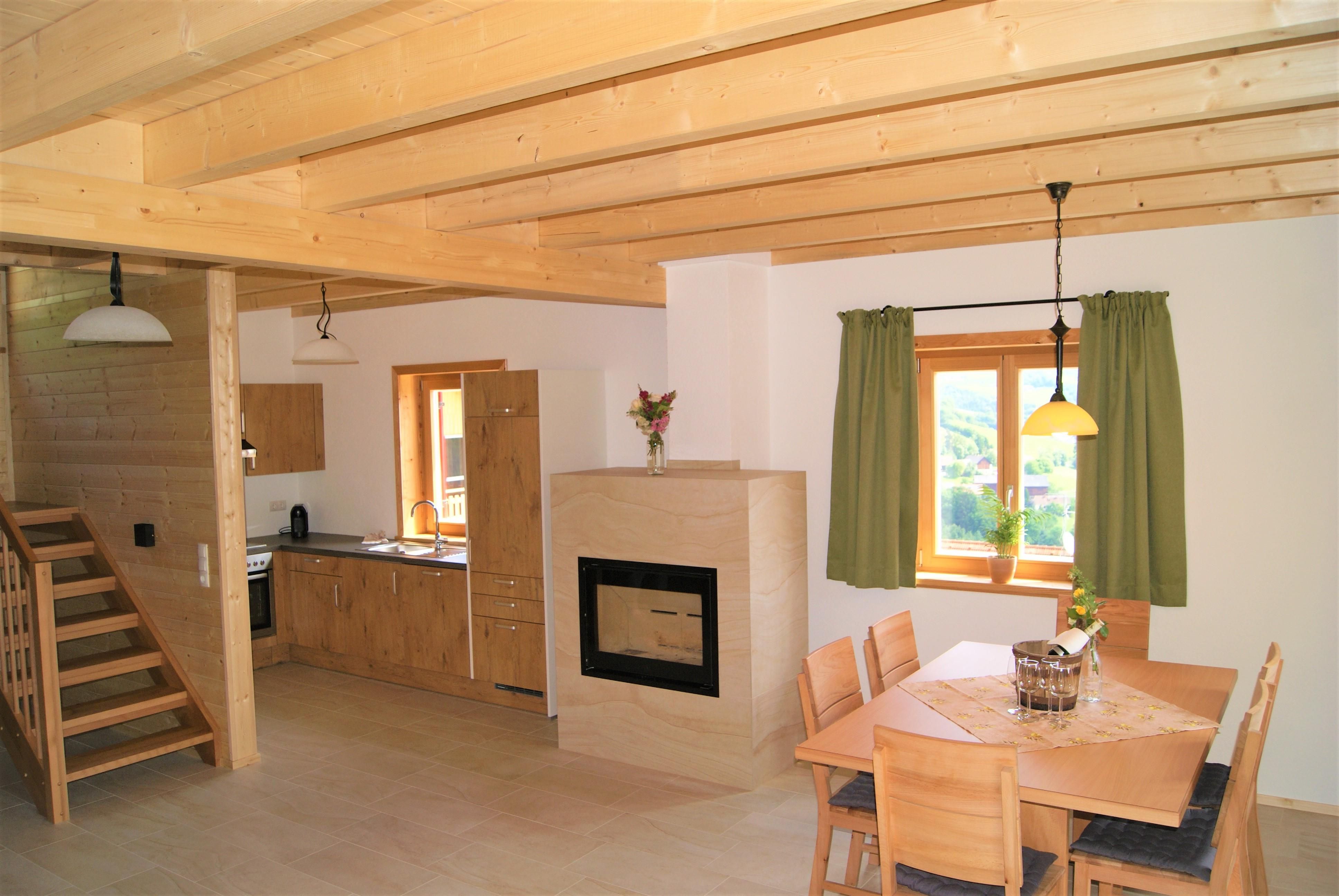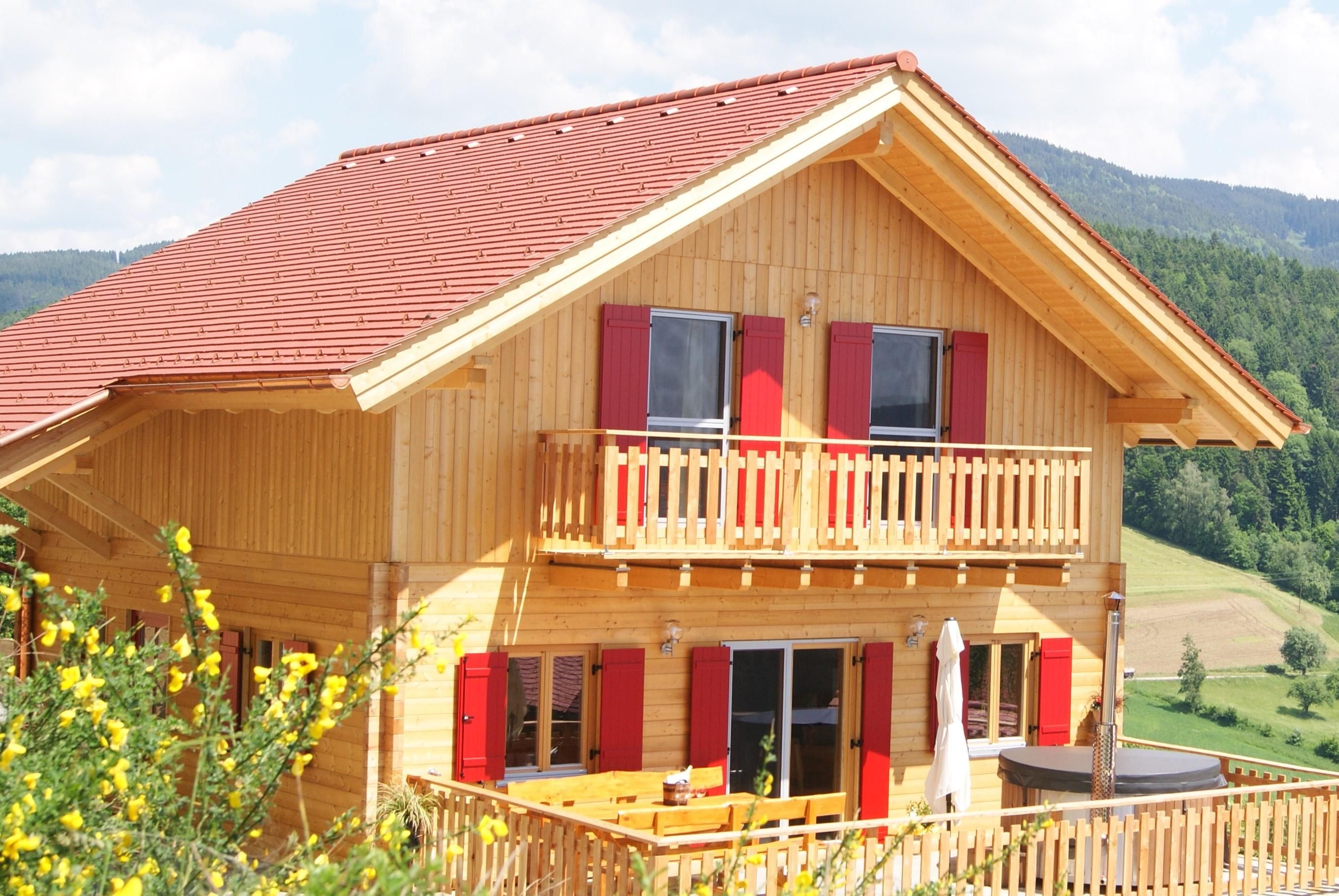 Neues Chalet, zwei Schlafzimmer mit eigenem Badezimmer und Smart TV, großer Wohn- Essbereich mit großem Smart TV, Kachelofen, Sauna, beheizbarer Pool - Hot Pot, große Terrasse mit traumhaftem Ausblick, am Waldrand, ruhige Lage, Teich in der Nachbarschaft