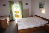 • Dreibettzimmer: Schlafzimmer mit einem Doppelbett und einem Einzelbett sowie Waschbecken