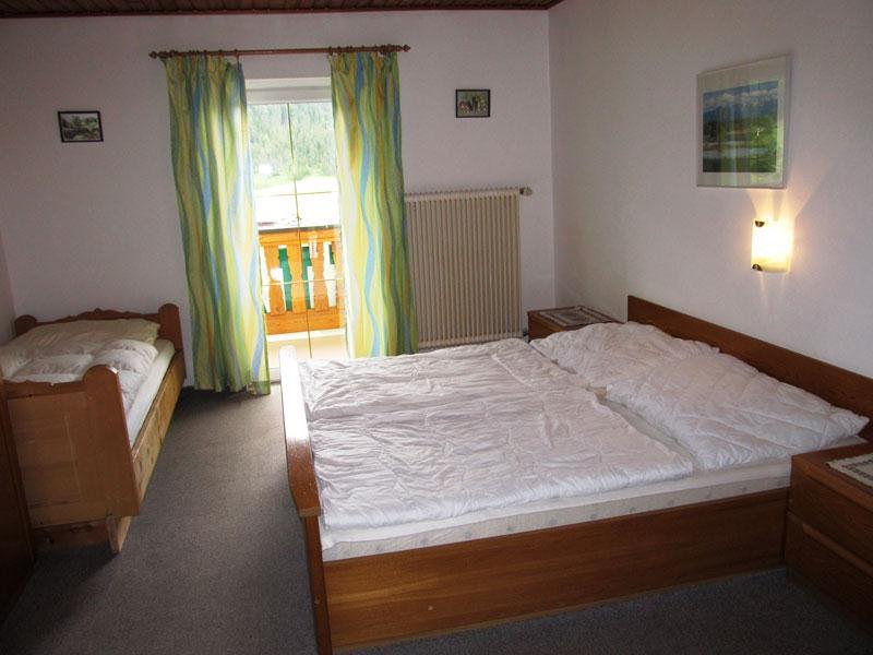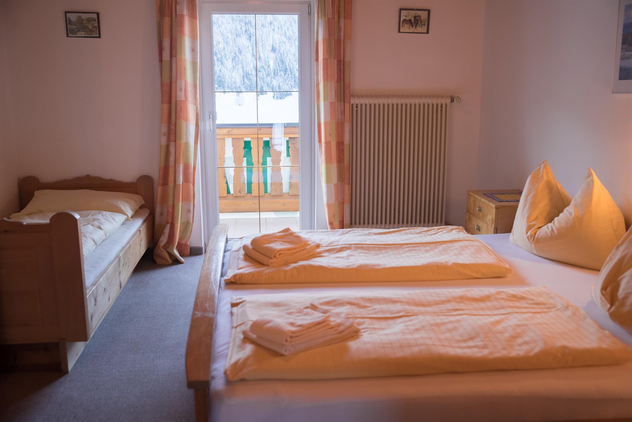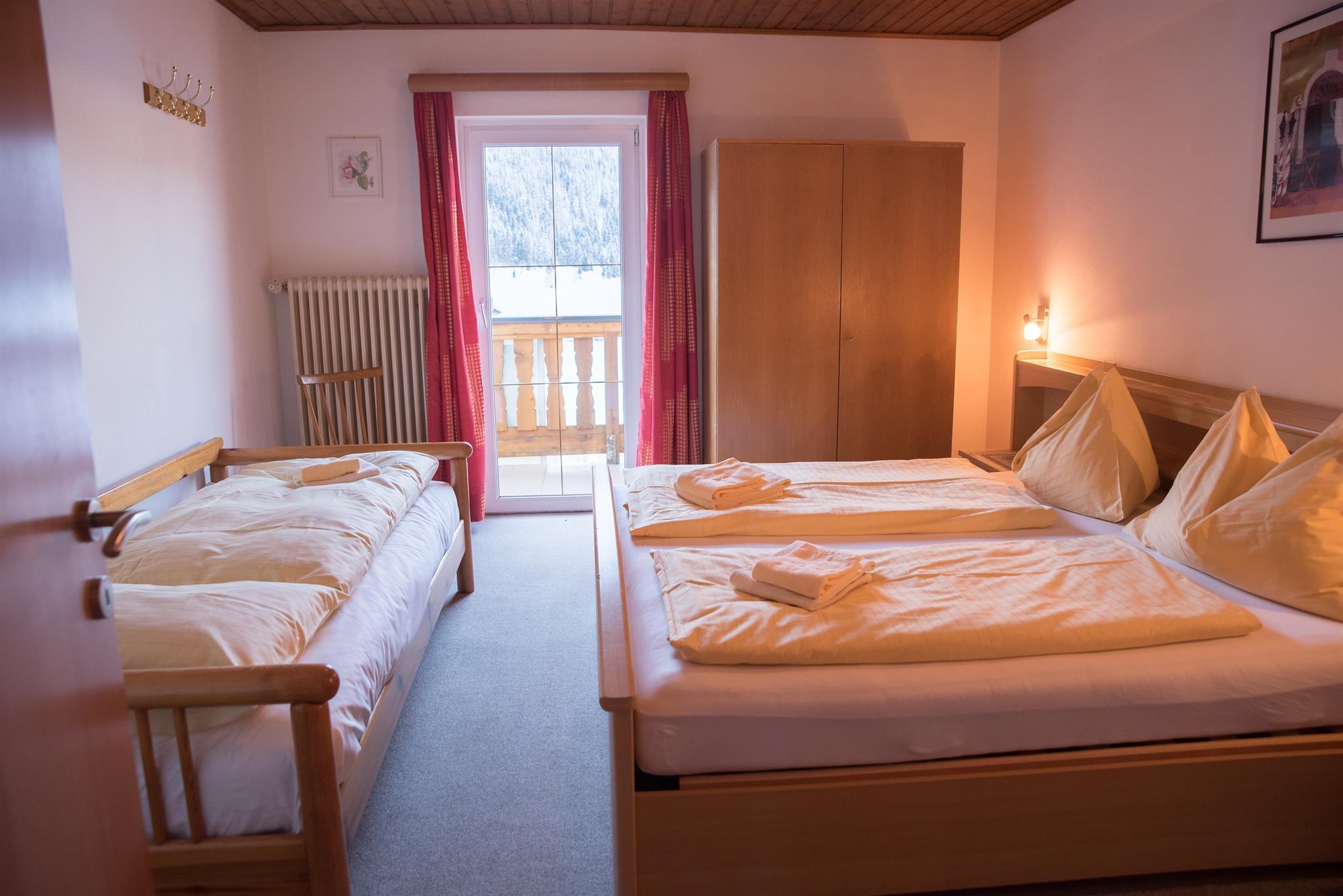• Drei Dreibettzimmer: Schlafzimmer mit einem Doppelbett und einem Einzelbett sowie Waschbecken und Balkon