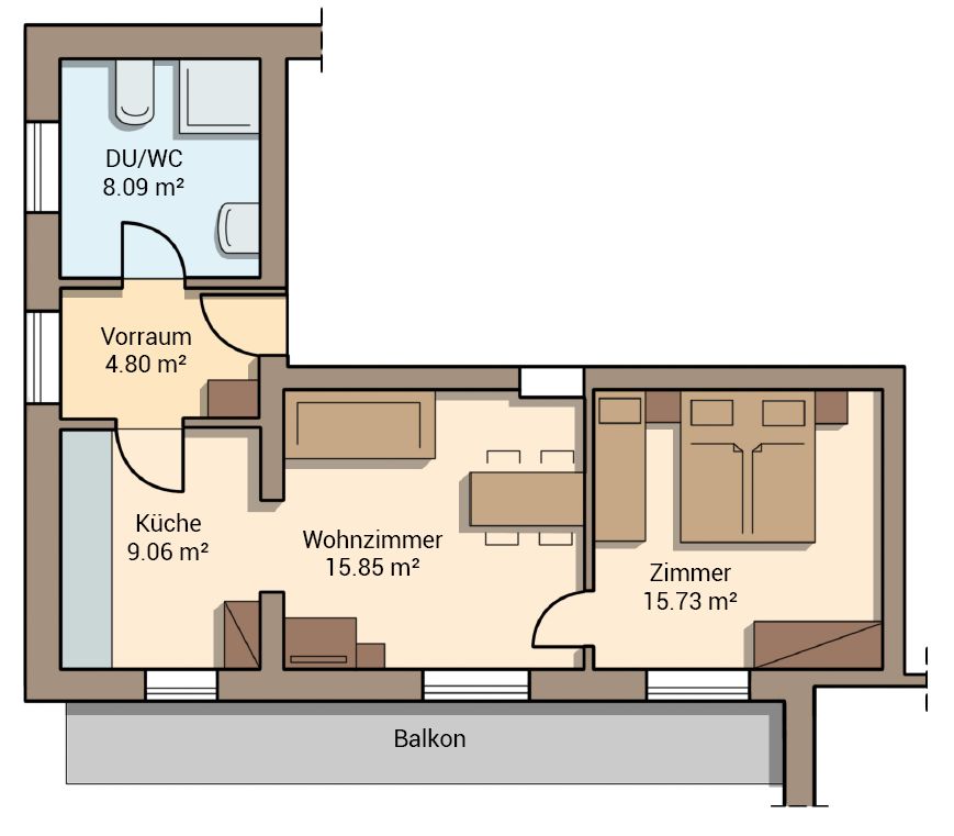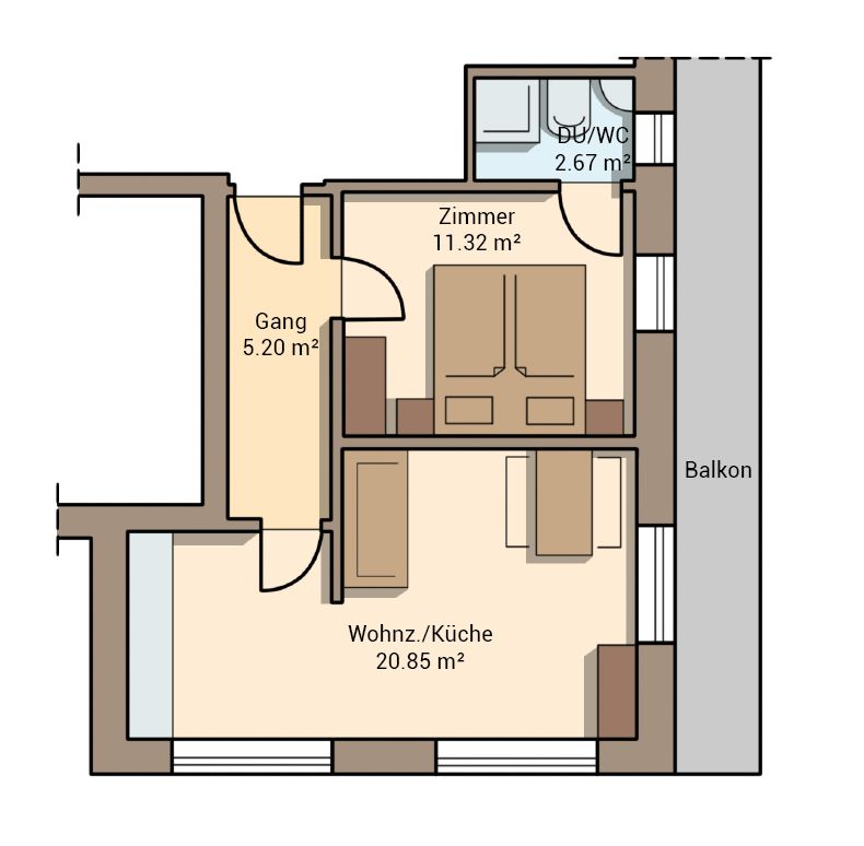Ihr Appartement Matau mit ca. 42 m² ist modern, sonnig und verfügt über 1 Schlafzimmer mit Boxspringbetten, 1 Badezimmer mit Dusche/WC, 1 Wohnküche mit ausziehbarer Couch für 2 weitere Personen, eine Sitzecke, Küchenblock mit Mikrowelle, Kaffeemaschine, Wasserkocher, Sat-TV und Balkon