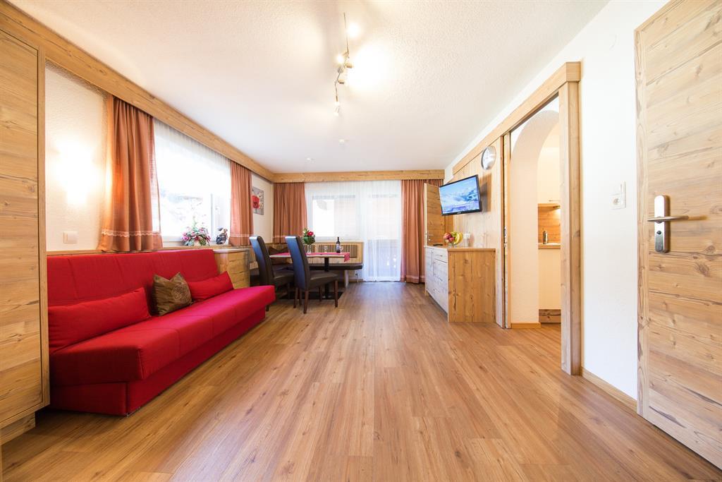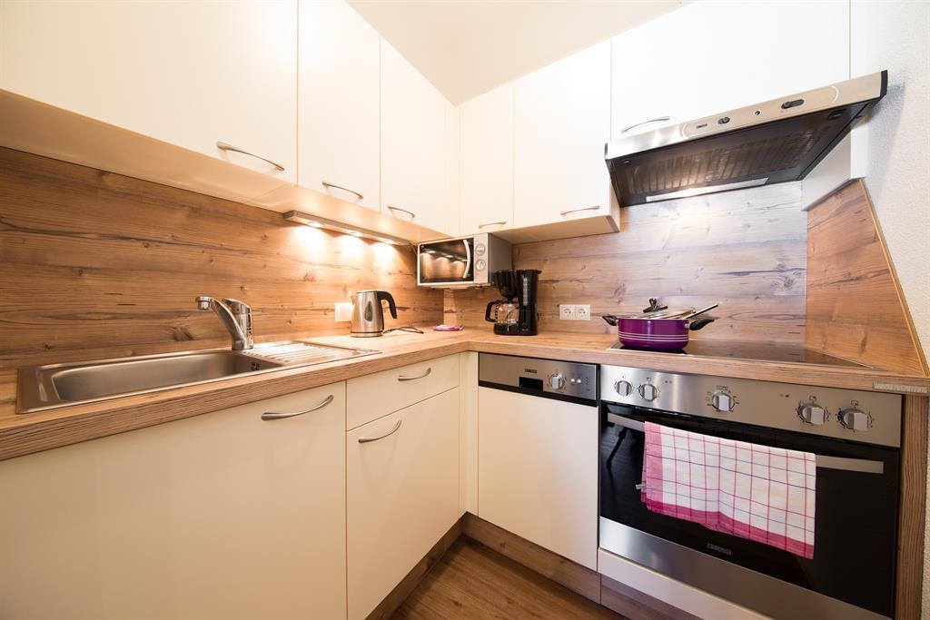 Das Appartement verfügt über: Schlafzimmer, Wohnschlafzimmer mit Schlafsofa und Sitzecke, Separate Küche mit 4 Plattenherd, Backrohr, Geschirrspüler, Kühlschrank, Kaffeemaschine, Wasserkocher, Mikrowelle und Toaster, Dusche/WC, Kabel-TV, Safe, Internet, Balkon. Ca. 40 m²