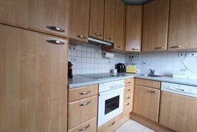 Die Küche ist komplett ausgestattet mit Herd, Backofen, Kühlschrank, Gefrierfach, Geschirrspüler, Mikrowelle, Nespresso-Kaffeemaschine, Wasserkocher, Eierkocher und natürlich sämtlichem Geschirr, Töpfen und Pfannen. Ebenfalls ist ein Frühstücksplatz für 2 bis 3 Personen vorhanden.