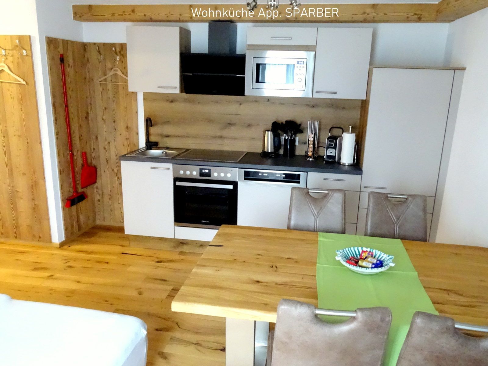 Das Apartment befindet sich im ersten Stockwerk des Stammhauses und wurde mit Altholz-Elementen gestaltet – eine Mischung aus Tradition und Moderne. Das exklusive Badezimmer wurde mit Walk-In-Dusche, WC und Touch-Radio eingerichtet. Im Apartment „Sparber“ finden Sie außerdem eine komplett eingerichtete Küche inklusive Geschirrspüler, eine Couch, eine Sitzecke, einen Elektrokamin und HD-Flachbildferseher vor. Nächtigen werden Sie im gemütlichen Boxspringbett, von dem aus Sie das Treiben am See beobachten können.