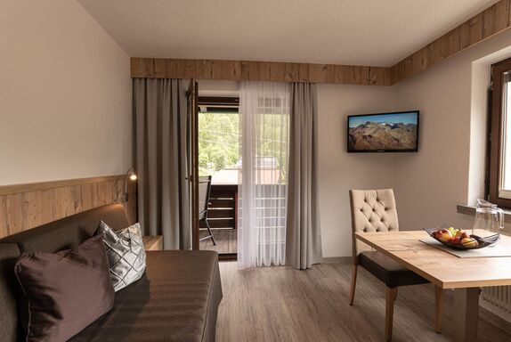 Das Appartement Stuibenfall im alpinen Lifestyle-Look bietet gemütlichen Wohnkomfort, gepaart mit heimeligem Ambiente und viel Privatsphäre. Neben einer voll ausgestatteten Wohnküche und einem Schlafzimmer mit Dusche/WC erwartet Sie ein herrlicher Blick vom Balkon auf die Ötztaler Berge.