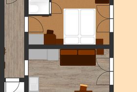 1 Schlafzimmer mit Dusche/WC (Zustellbett möglich), Wohnküche mit Essbereich und Schlafcouch für 1 Person, kostenloses WIFI, 2 kostenlose Parkplätze