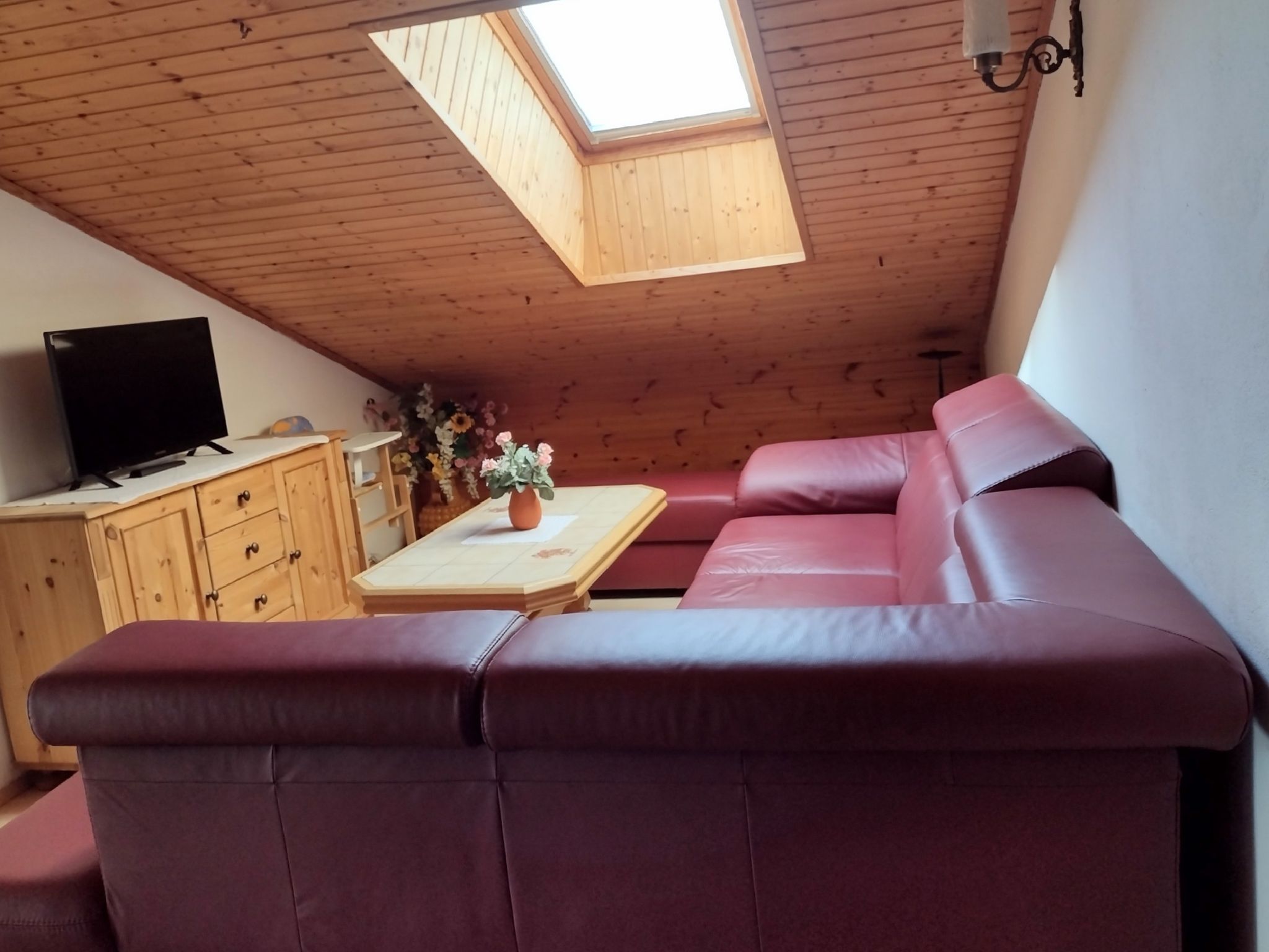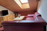 Wohnzimmer, Essbereich und Vorzimmer befinden sich in einer räumlichen Ebene: großzügige Eckwohnlandschaft, massiver Esstisch für 6 Personen, SAT/TV und gratis WLAN