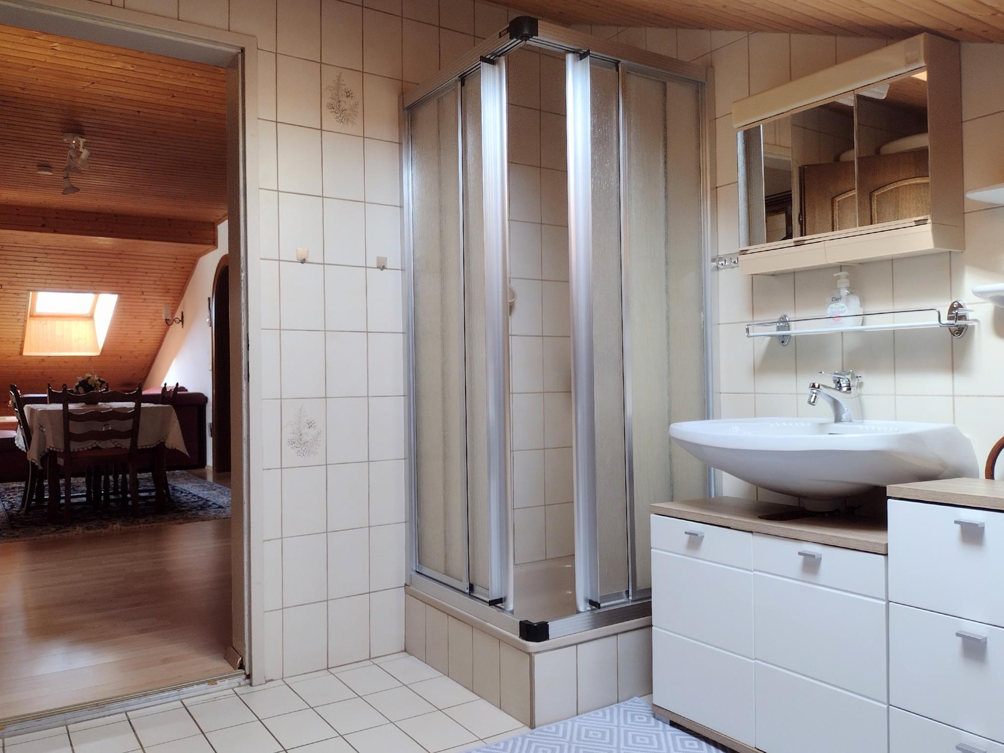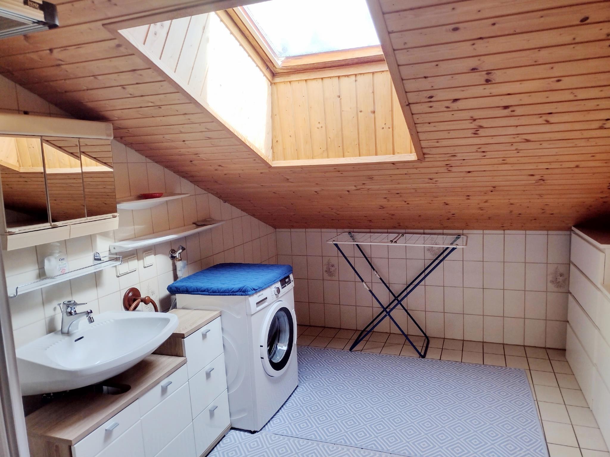 Das Appartement ist mit 1 großem Badezimmer mit Dusche/WC , 1 Waschbecken und 1 Waschmaschine ausgestattet.