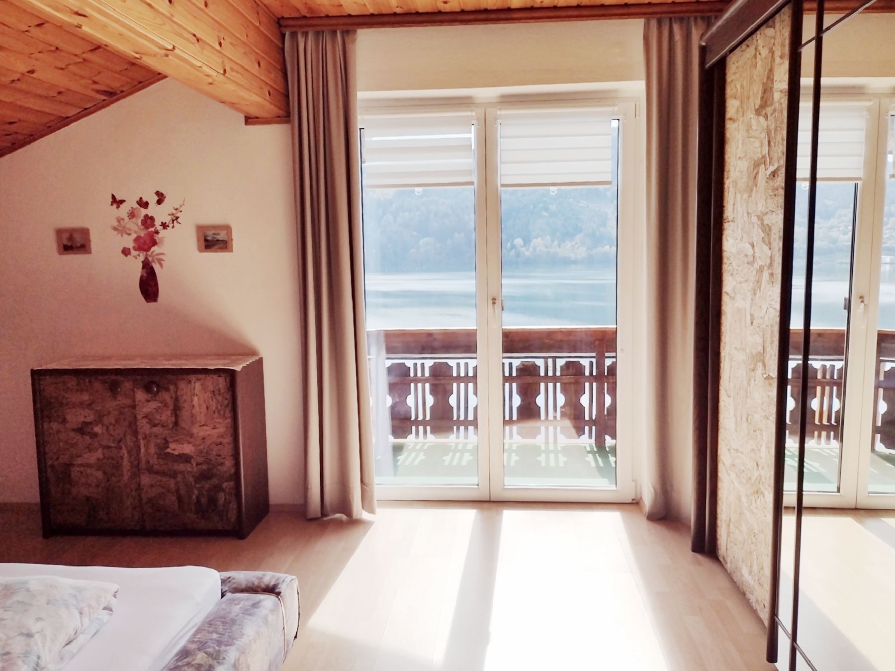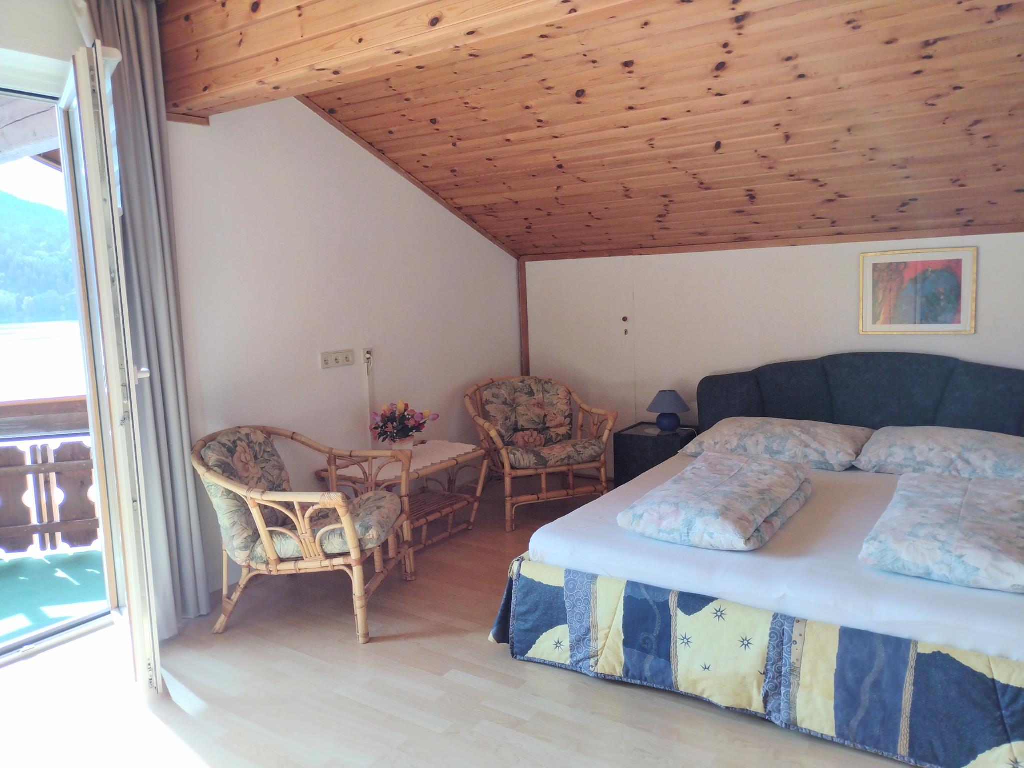 Es erwarten Sie 95m² Wohnfläche mit rustikalem Flair und viel Echtholzausstattung. Die 2 DZ verfügen über französiche Betten, große Kleiderschränke bieten viel Stauraum und gemütliche Leseecken lassen Sie den Alltag vergessen. Der gemeinsame Balkon, nach Süden hin ausgerichtet, animiert zum Entspannen und bietet einen einzigartigen Ausblick auf den Millstätter See und die umliegende Bergwelt.