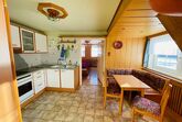 Die 2 Fenster im Schlafzimmer mit Doppelbett lassen sie auf einen Obstgarten und manchmal auch auf eine Schafherde blicken. In der großen voll ausgestatteten Küche befindet sich eine praktische Essecke mit Blick auf den Garten und eine Pferdeweide.