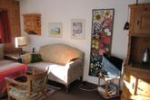 Im Inneren erwartet Sie eine geschmackvolle Einrichtung, die sowohl Komfort als auch Stil bietet. Das grosszügige Wohn-Schlafzimmer mit 25 m², ausgestattet mit einem grossen Arvenholzbuffet, einer Ess-Ecke umrahmt von Arvenholzwänden und einem Arvenholz-Schiefertisch, schafft eine einzigartige Atmosphäre. Auch finden Sie hier ein gemütliches Bettsofa sowie ein Kaffeetischchen mit antikem Sofa und bestickten Stühlen für entspannte Momente. Das kleinere Schlafzimmer, ein Bad mit Dusche und Bidet sowie eine Kochnische mit praktischer Ausstattung runden das Angebot ab. W-LAN und ein Büchergestell mit unterhaltsamen Büchern sorgen für zusätzliche Entspannung.