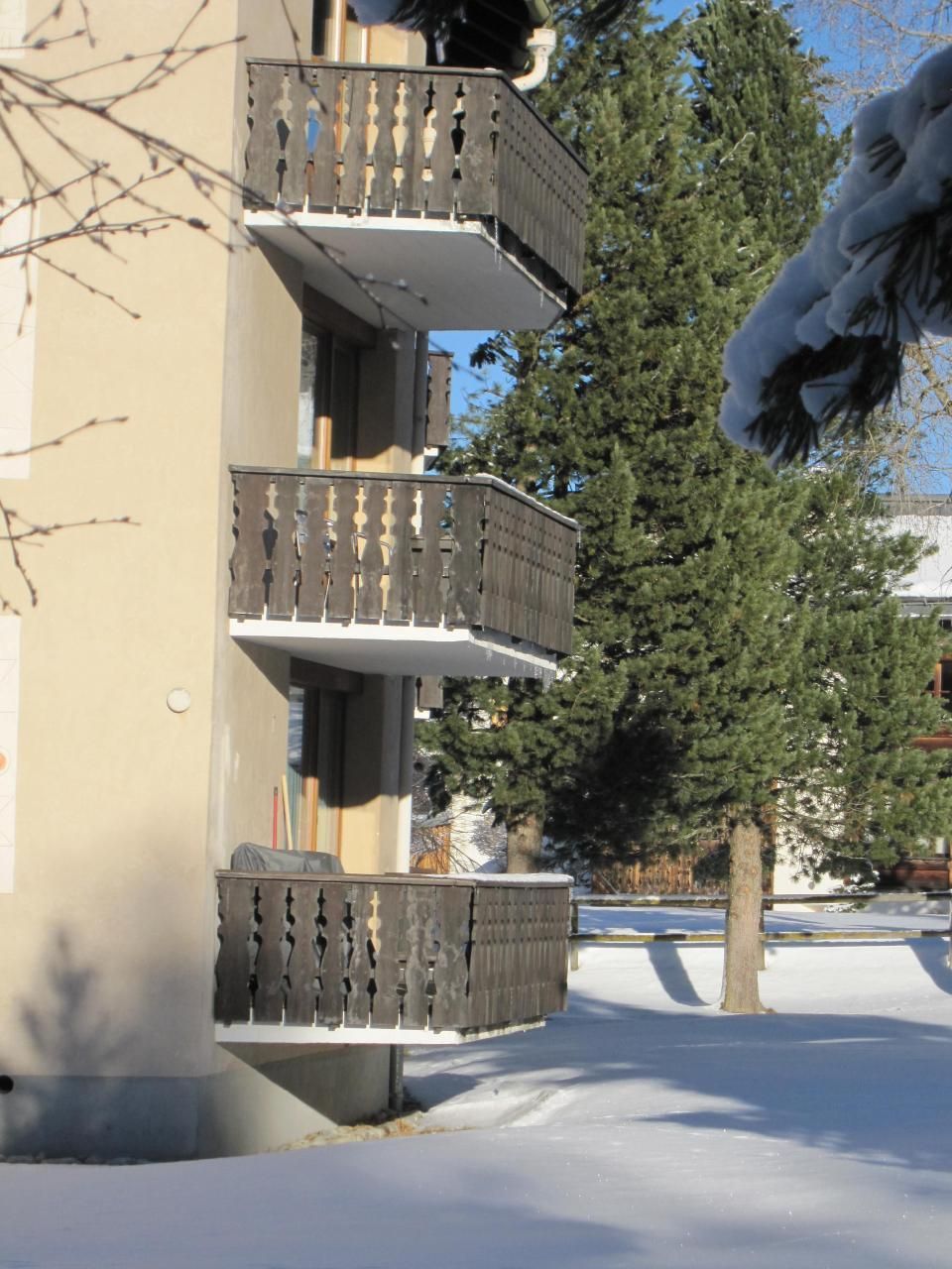 Der Aussenbereich lädt mit einem bestückten Südbalkon, auf dem ein Tisch und zwei Aluminium-Stühle für Sie bereitstehen, zum Verweilen in der Sonne ein. Für Skifreunde gibt es einen praktischen Abstellraum für Ski und Schlitten. Zudem sind ein Keller- und Estrichabteil für weitere Lagermöglichkeiten verfügbar und vor dem Haus finden Sie einen Parkplatz, der bequemes Ankommen ermöglicht.