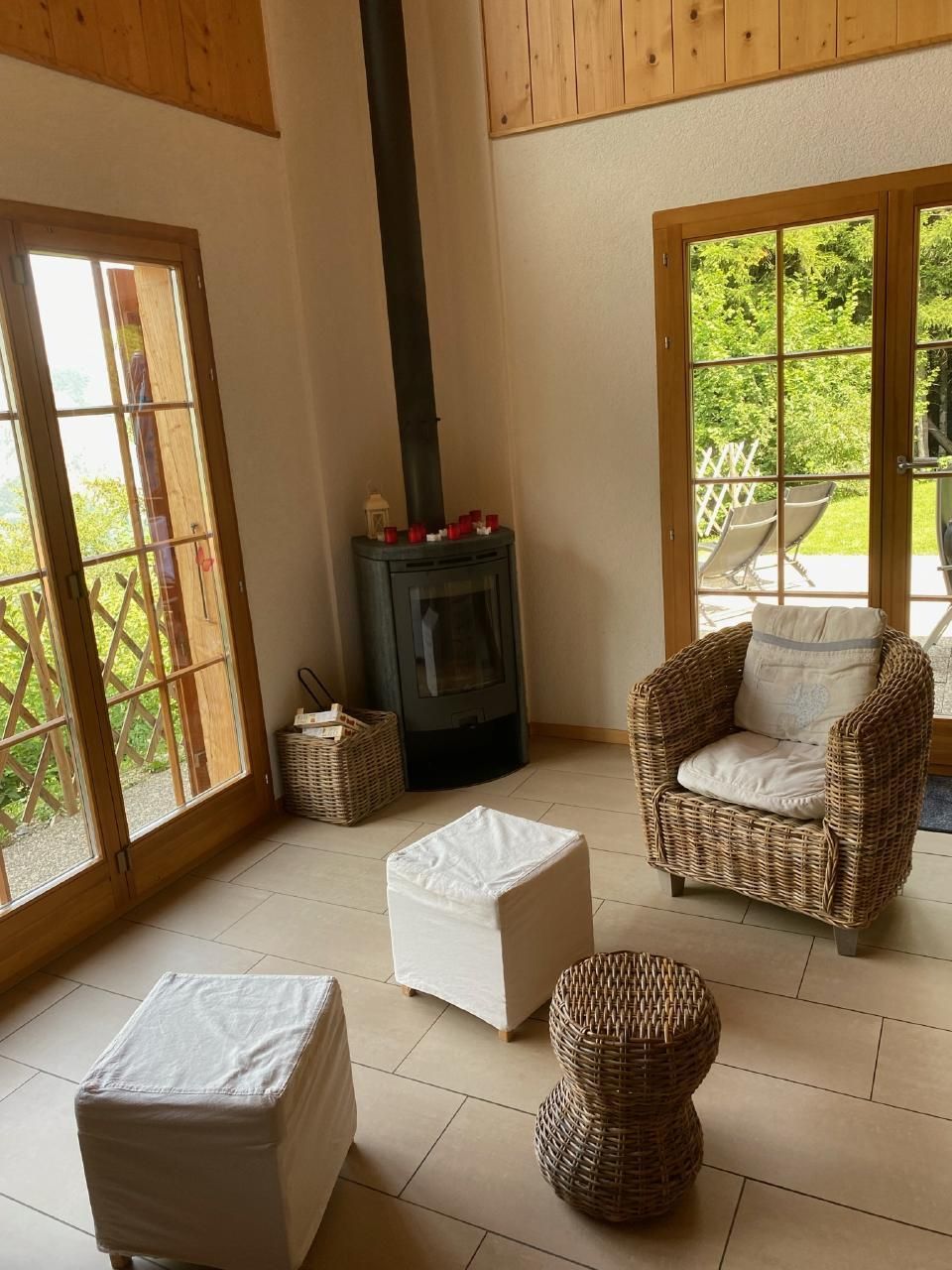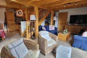 Das Innere des Chalets mit einer Fläche von 150 m² vereint Geräumigkeit, Funktionalität und Komfort. Die Küche ist mit einem Backofen, einer Mikrowelle, zwei Arten von Kaffeemaschinen (Filterkaffee und Nespresso) sowie einem Geschirrspüler voll ausgestattet und bietet alles, was Sie brauchen, um wie zu Hause zu kochen. Das Esszimmer und das Wohnzimmer bilden einen geselligen, offenen Raum, der ideal für gemeinsame Momente ist. Zwei Terrassen, die Privatsphäre und Ruhe garantieren, vervollständigen diesen idyllischen Rahmen. Eine Waschküche mit Waschmaschine und Trockner sowie Highspeed-Wifi in der gesamten Wohnung erfüllen alle Ihre Erwartungen an Komfort und Konnektivität.
