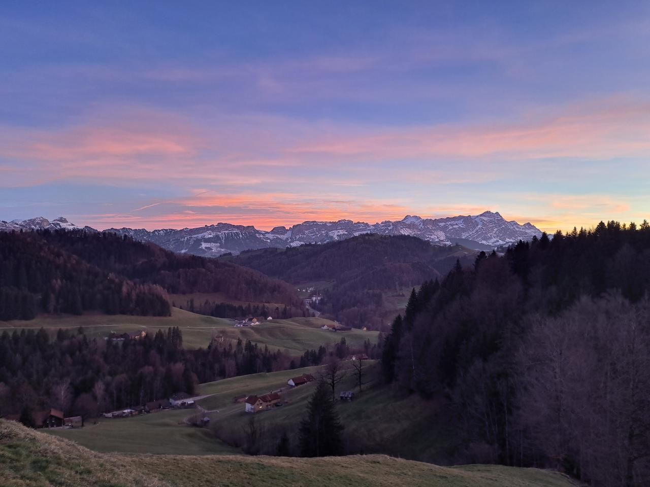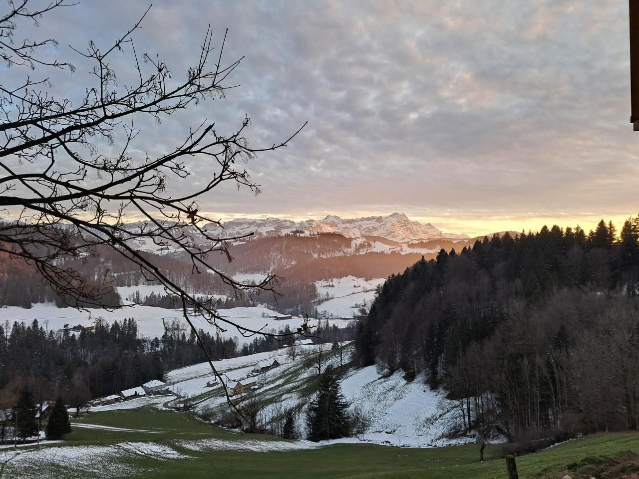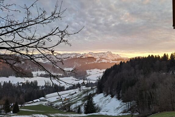 In unserem gemütlichen Sennenstübli auf 1000müM. ist Ihnen der Alpstein so nah wie nie zuvor.Das kleine Chalet mit seiner optimal eingerichteten Küche, einem Badezimmer mit WC und Dusche, dem Schlafzimmer mit Doppelbett und dem kleinen herzigen Stübli mit Fernseher und Radio lädt zum Verweilen ein. Wir empfelen jedoch das Panorama Fernsehprogramm auf den Alpstein. Oberhalb des Stüblis gibt es ein Massenlager das Platz bietet für bis zu drei Personen. Der grosse Garten und die Terrasse geben Platz um draussen die Natur zu geniessen und zu entspannen. Sie können wunderschöne Sonnenauf und -untergänge mit Blick auf den Alpstein geniessen. Der atemberaubende Ausblick über den Alpstein, Hügel und das Land lädt zudem zum Wandern, Sporttreiben und spazieren ein. Das Häuschen ist perfekt gelegen für Wanderungen oder für Wintersportferien mit Schneeschuhlaufen, Langlaufen oder Schlitteln. Wer es gerne einfach und Naturverbunden hat ist bei uns genau richtig. Bei uns können sie dem Alltag entfliehen und ins Landleben schnuppern. Gerne dürfen sie auch einen Einblick in unseren Landwirtschaftlichen Betrieb, nicht weit vom Ferienhaus, erhalten. Frische Milch direkt von der Kuh und Eier von unseren Hühnern könne gerne bei uns bezogen werden.Das Ferienhaus liegt ausserhalb vom Dorf es führt eine Einbahnstrasse zum Haus. Bitte beachten Sie das im Winter ein 4x4 Auto nötig ist.