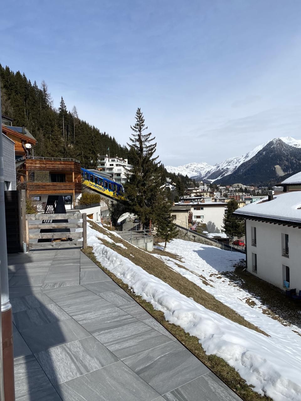 Die sonnige Aussichtslage der nach Südwest ausgerichteten Liegenschaft gibt den Blick frei auf ein aussergewöhnliches Bergpanorama mit dem berühmten Jakobshorn.