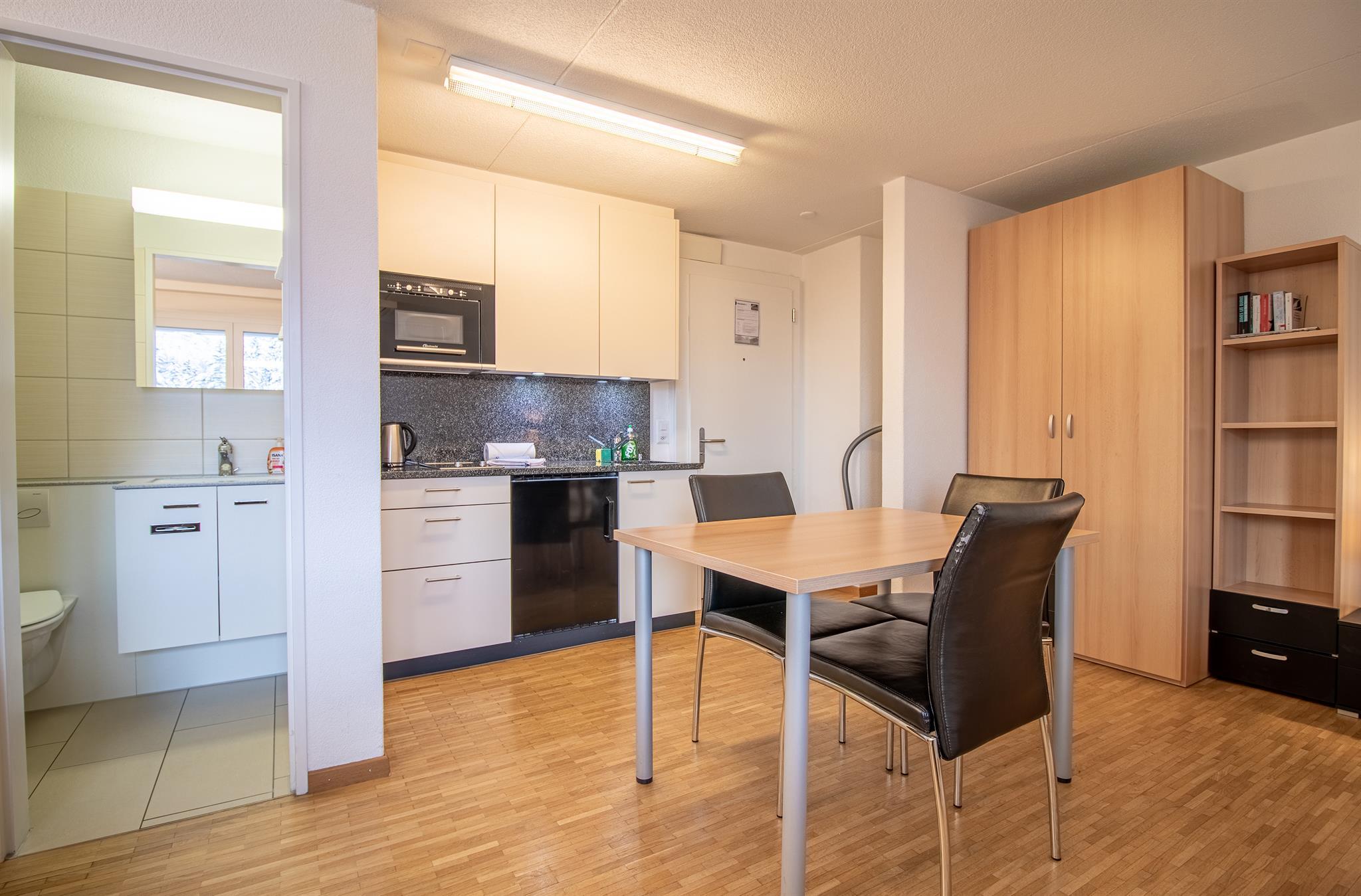 Das kleine und einfache Studio befindet im 1. Stock eines Wohngebäudes in ruhiger Lage. Das Studio liegt nur wenige Meter von der nächsten Bushaltestelle entfernt und die Bergbahnen und Einkaufsmöglichkeiten in Arosa sind dadurch einfach zu erreichen.