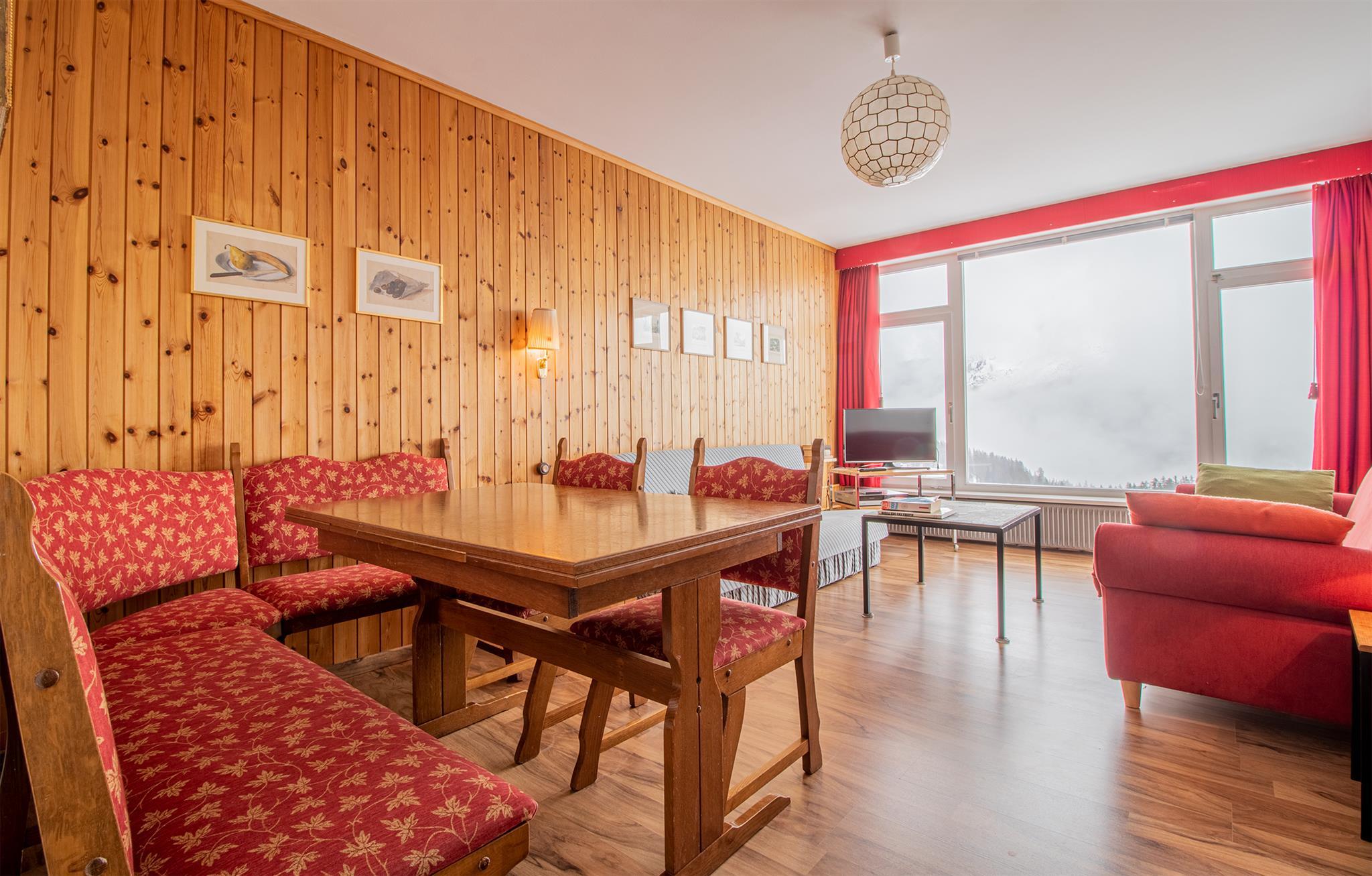 Die helle 4-Zimmer-Wohnung befindet sich auf der 2. Etage eines Wohngebäudes an ruhiger Lage im Zentrum von Arosa. Der spektakuläre Bergblick vom Balkon und den Zimmern ist einer der besten in Arosa. Die Bushaltestelle sowie Einkaufsmöglichkeiten an der Hauptstrasse sind in unmittelbarer Nähe der Wohnung.