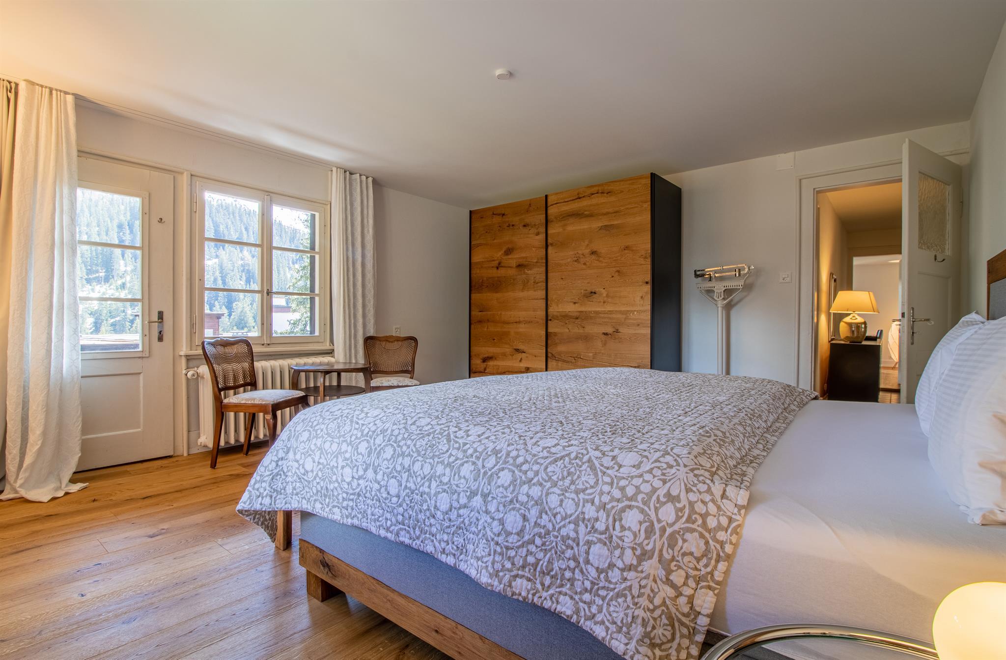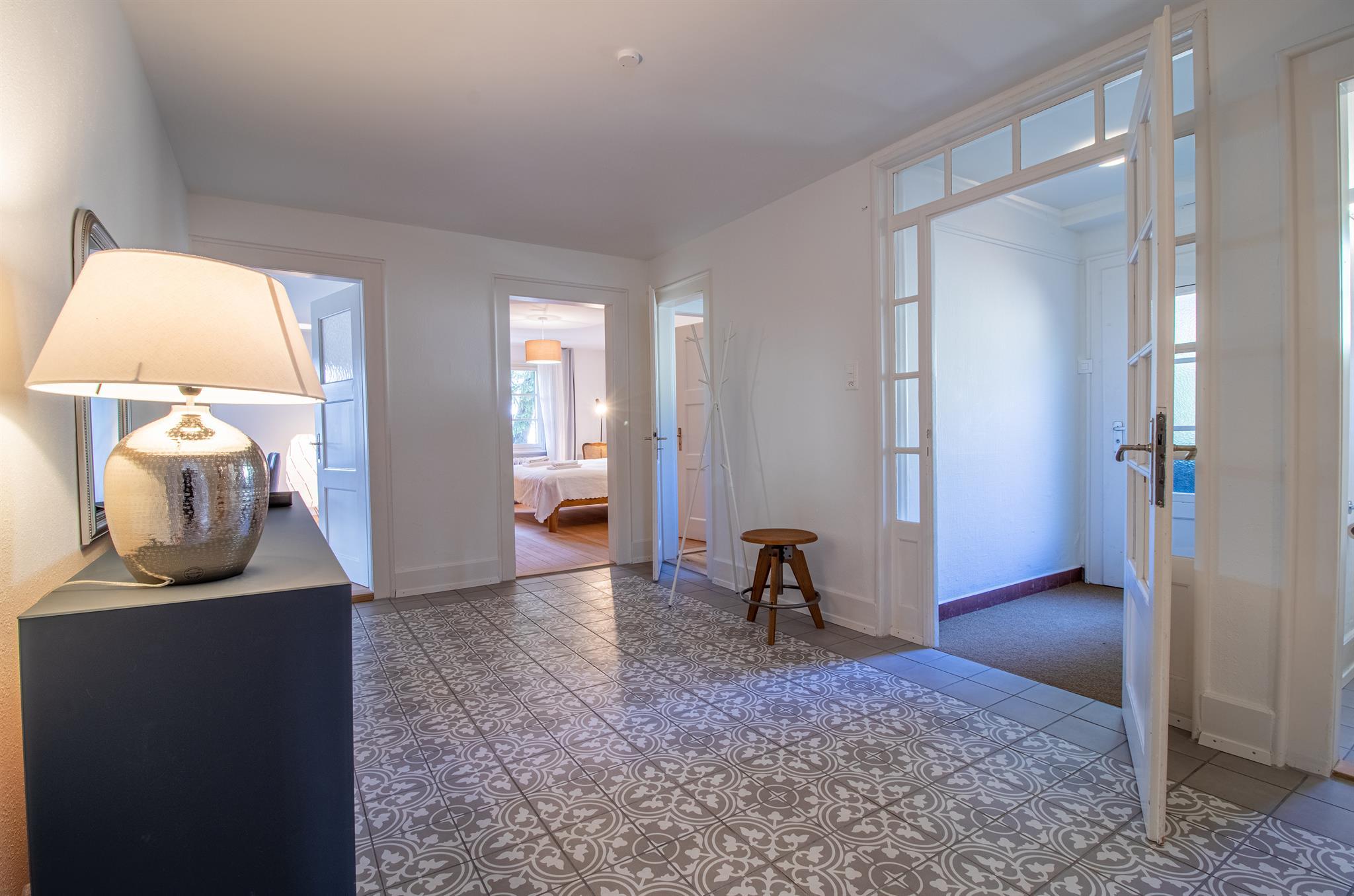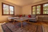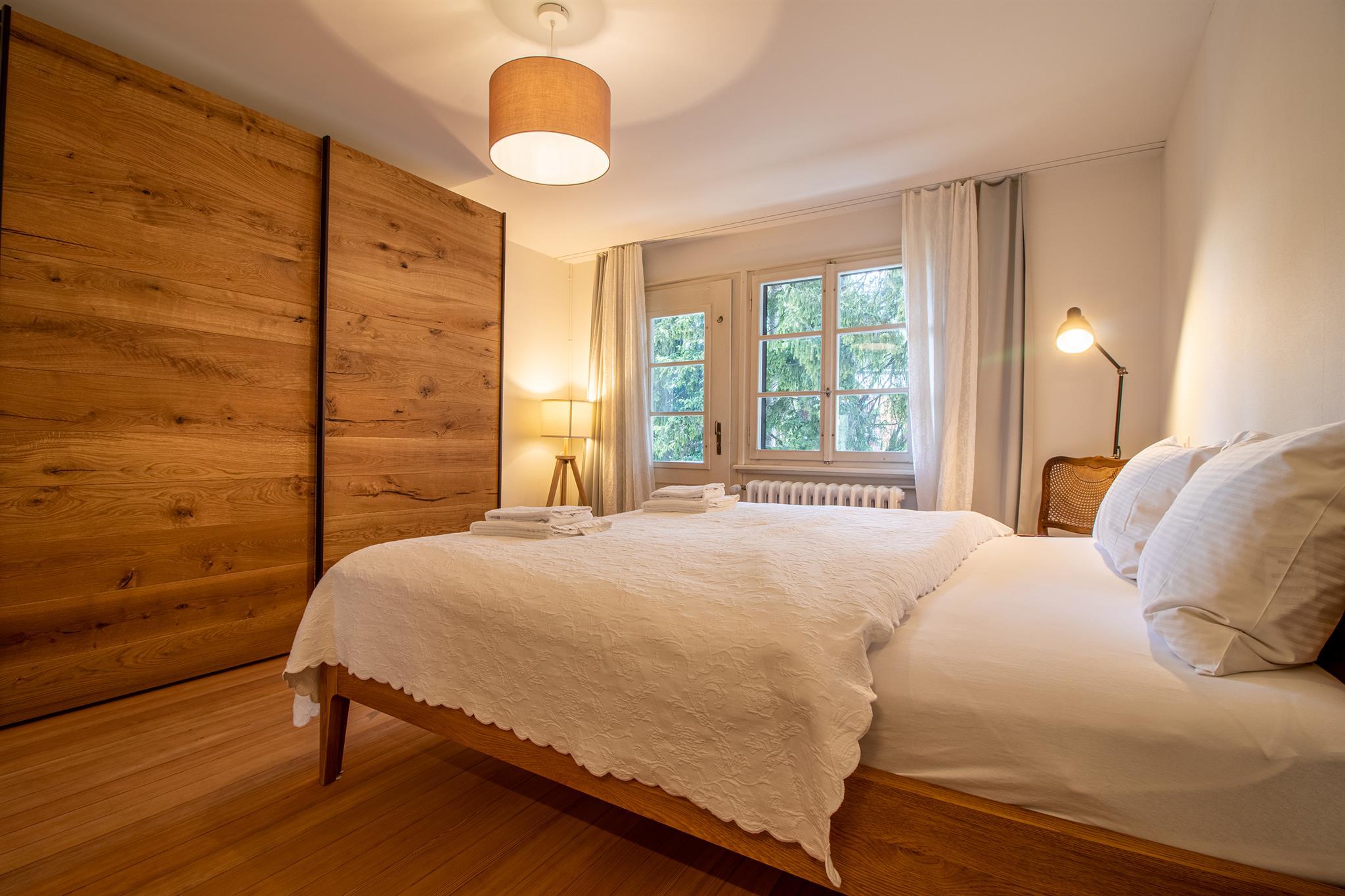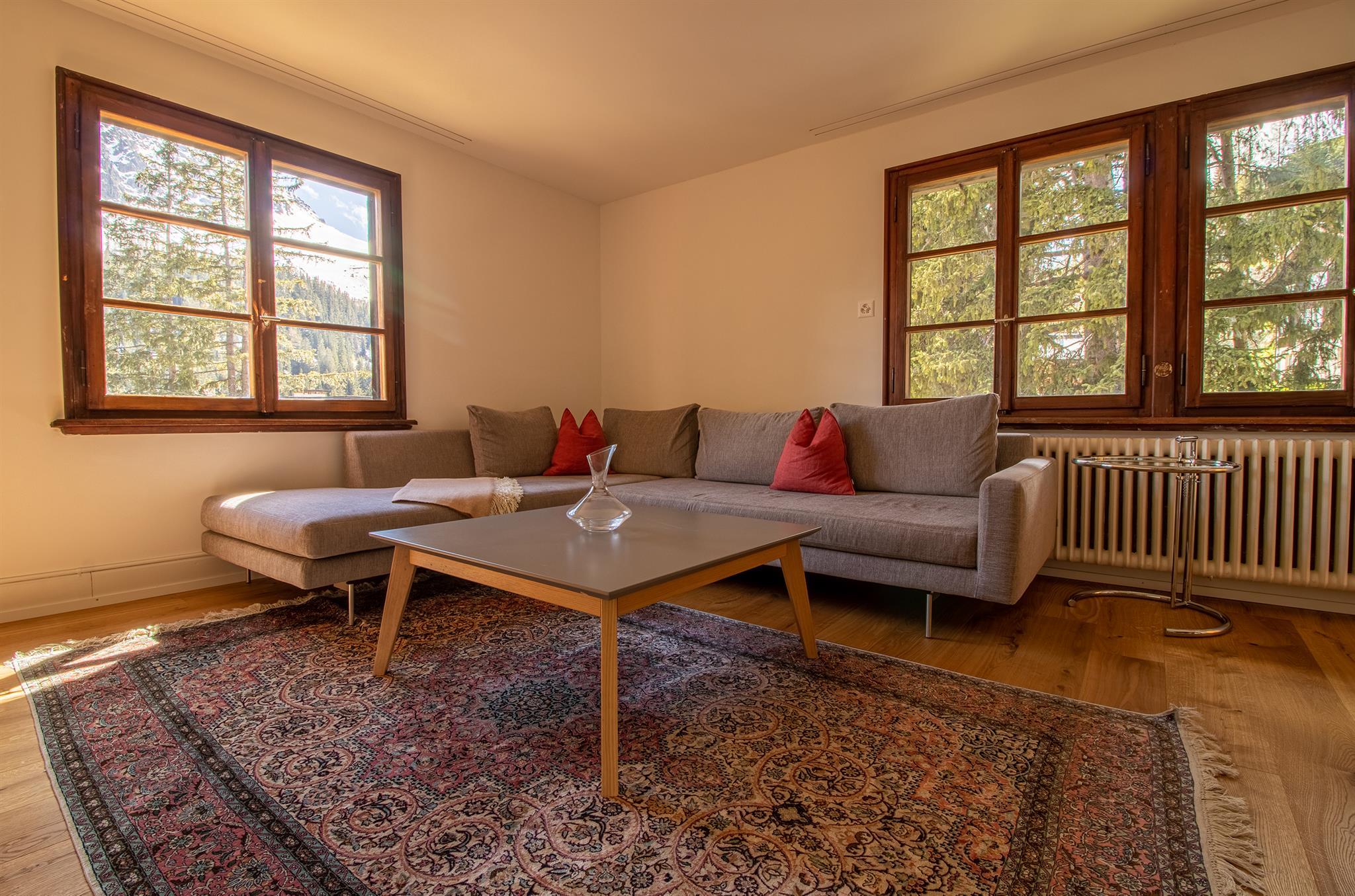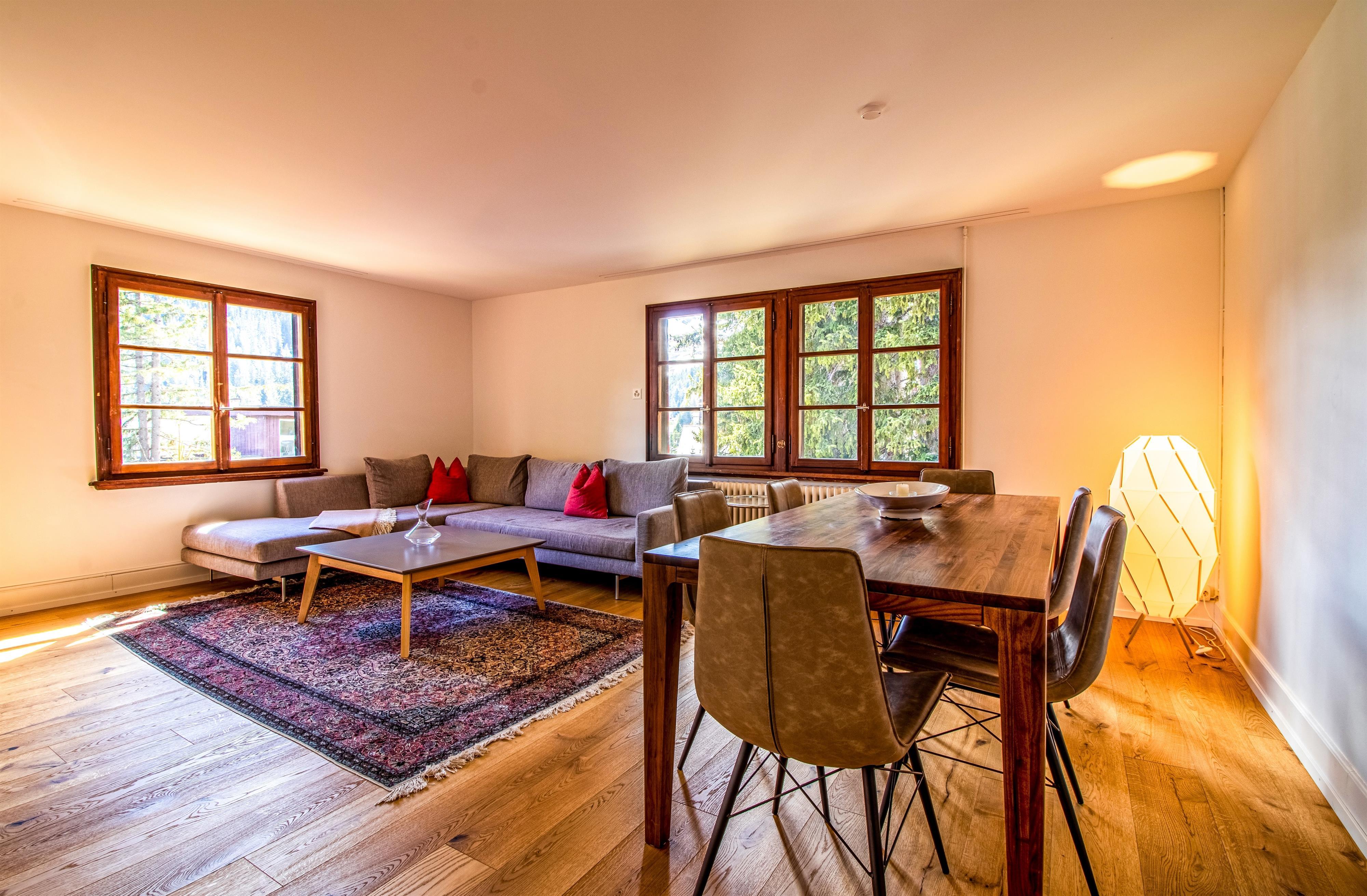 Die komplett renovierte und geschmackvoll eingerichtete 4.5-Zimmer-Familienwohnung befindet sich im 1. Stock eines freistehenden, schönen Holzchalet mit vier separaten Wohnungen. Das Chalet Pradella befindet sich an ruhiger Lage – umgeben von viel Natur, mit herrlichem Bergblick und nah am Zentrum.