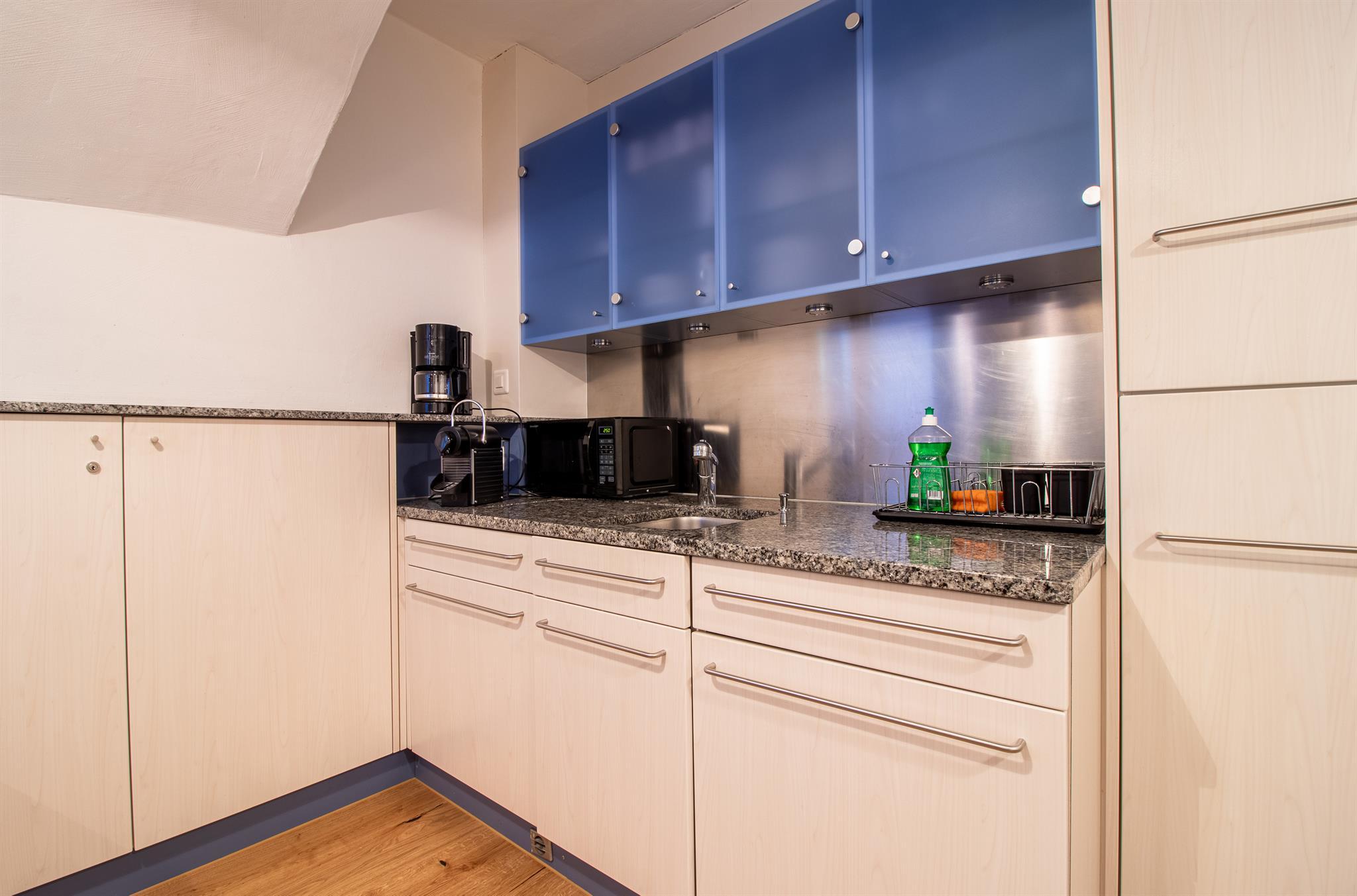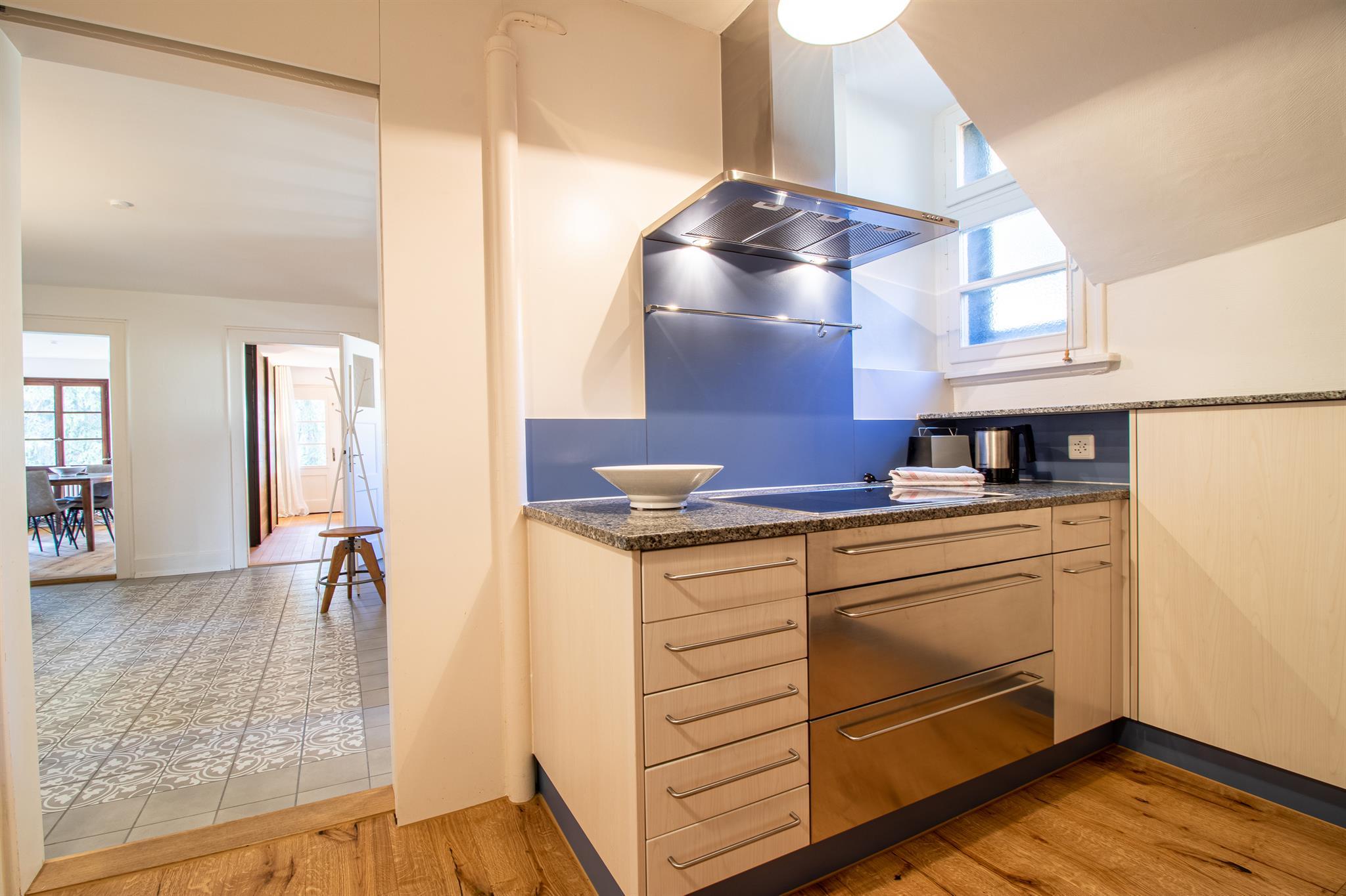 Separate, ausgestattete Küche mit kleinem Essbereich