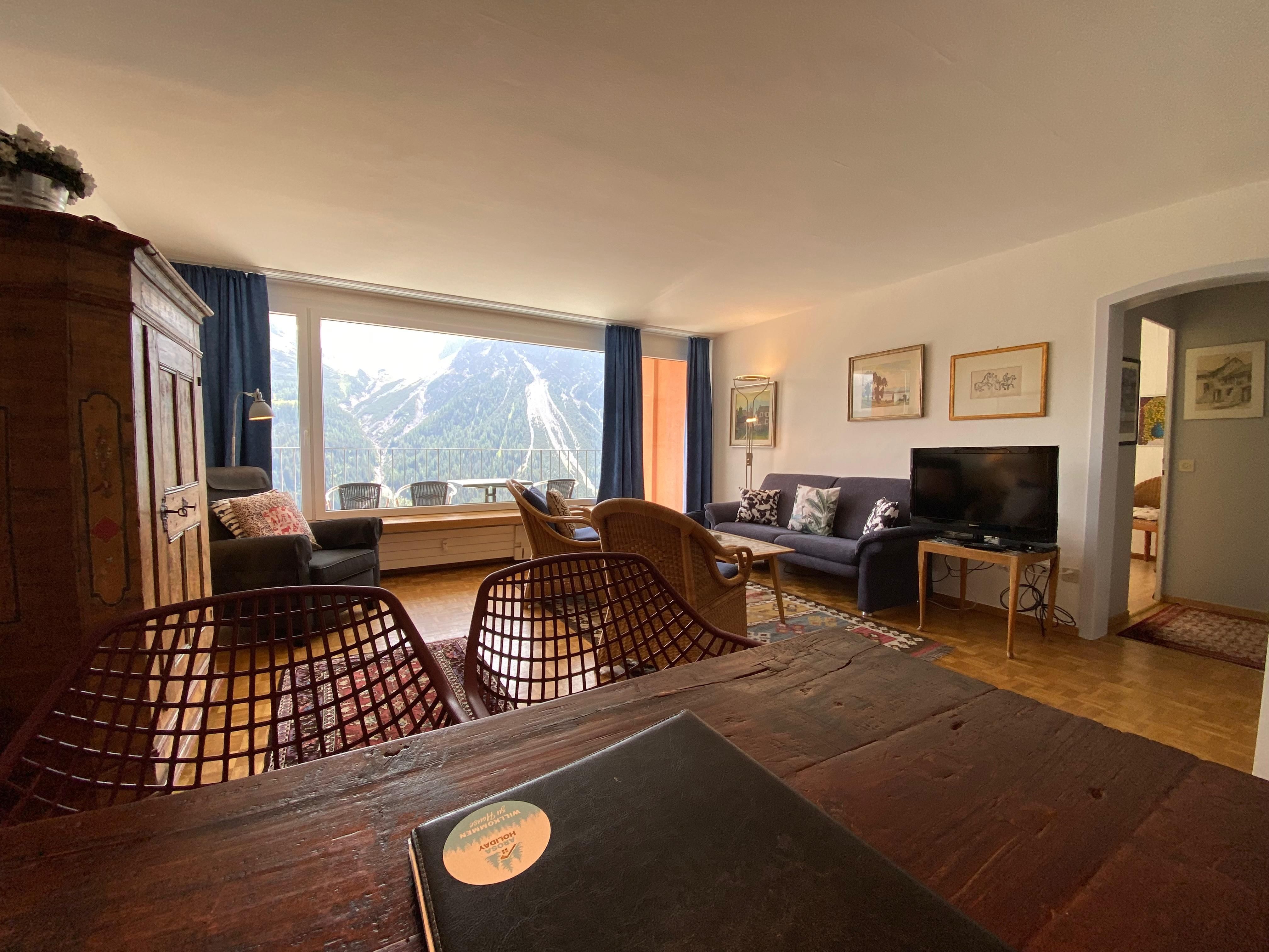 3 Zimmerwohnung. Hohe Promenade, grandiose Aussicht, Süd- Westbalkon (5. Stock aber ebenerdig von der Hohen Promenade da Hanglage), gut ausgestattet, TV, WLAN, Spülmaschine, 10 Gehminuten zum Bahnhof, 4 Minuten zum Coop, Garage am Ortseingang im Tannenhof, Haustier auf Anfrage.