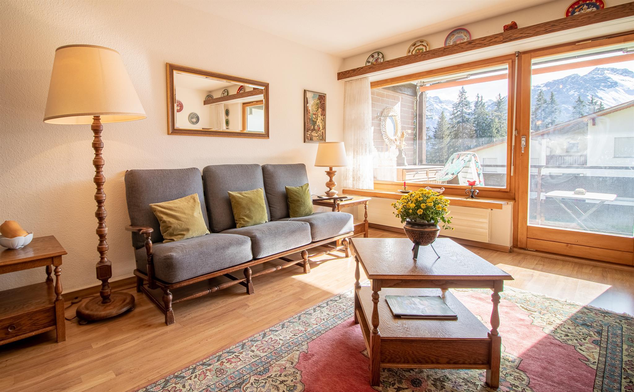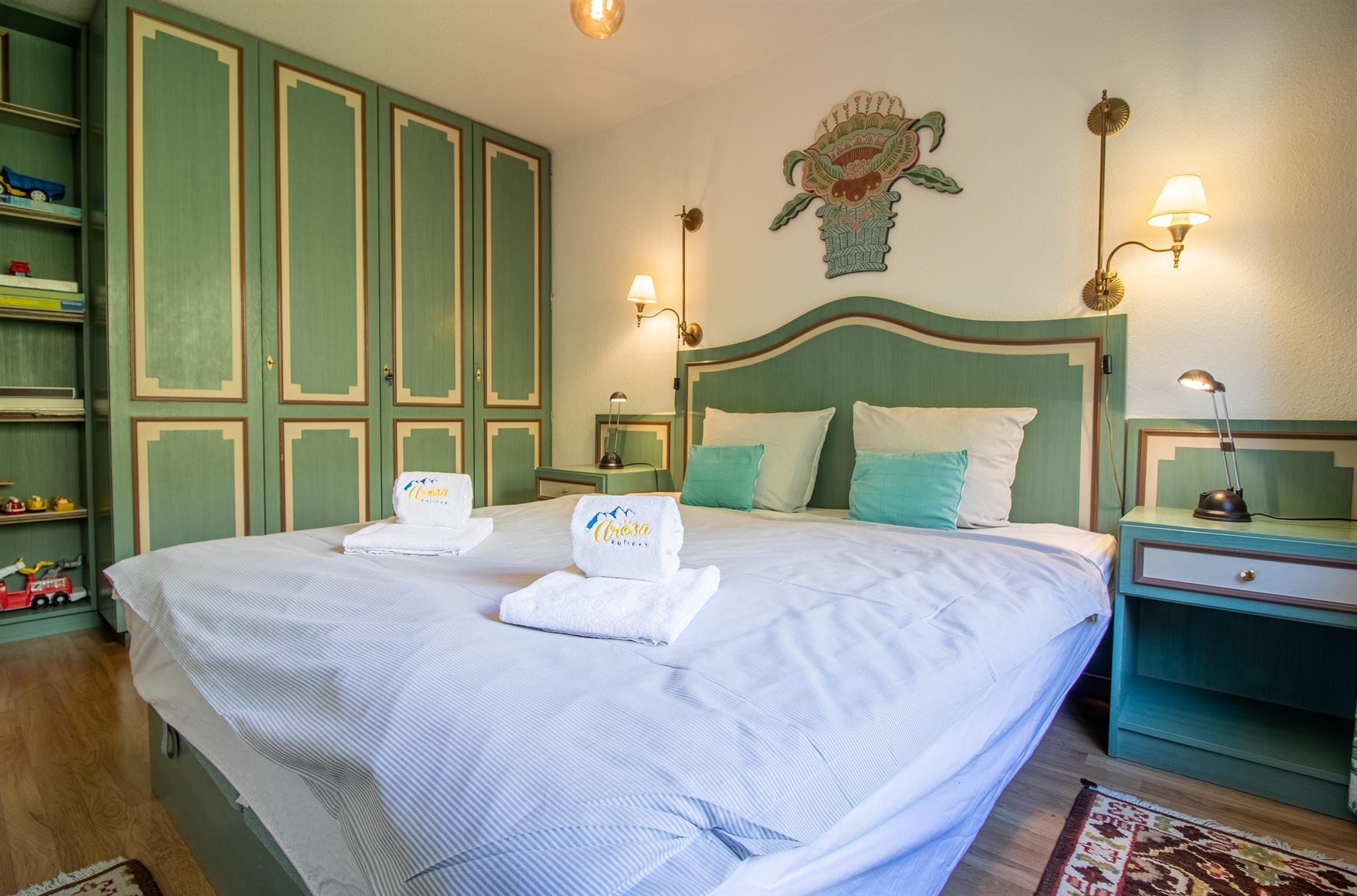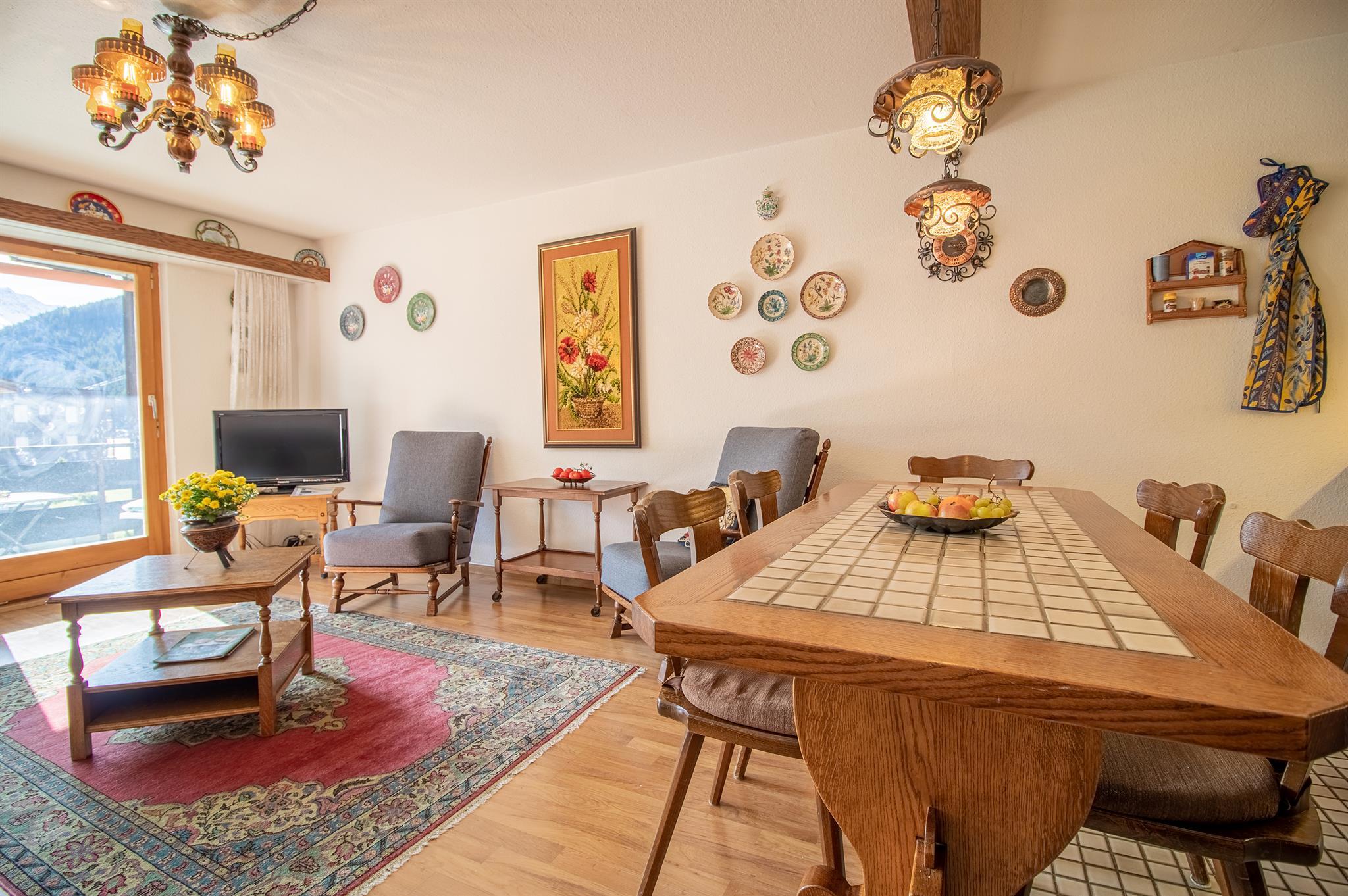 Die geräumige 2-Zimmer-Wohnung befindet sich im 1. Stock eines Wohngebäudes am ruhigen Maranerhang, mit integriertem Schwimmbad und Sauna zur Mitbenutzung während den Hauptsaisonzeiten. Der sonnige Balkon bietet einen schönen Blick auf die Berge. Die nächste Bushaltestelle ist nur wenige Meter vom Gebäude entfernt.