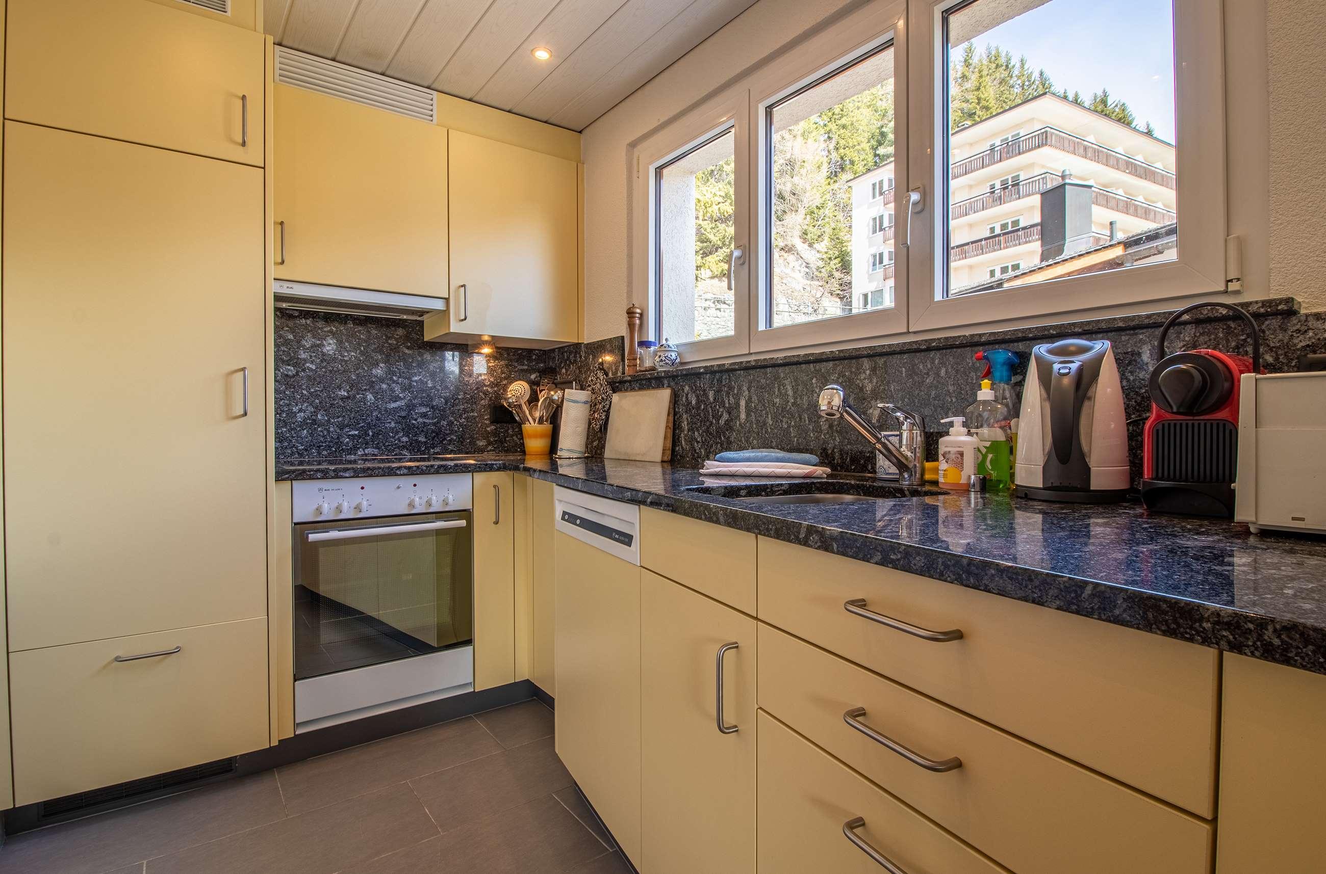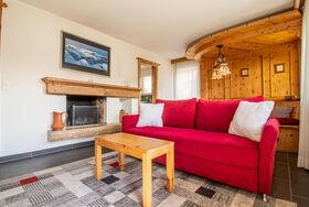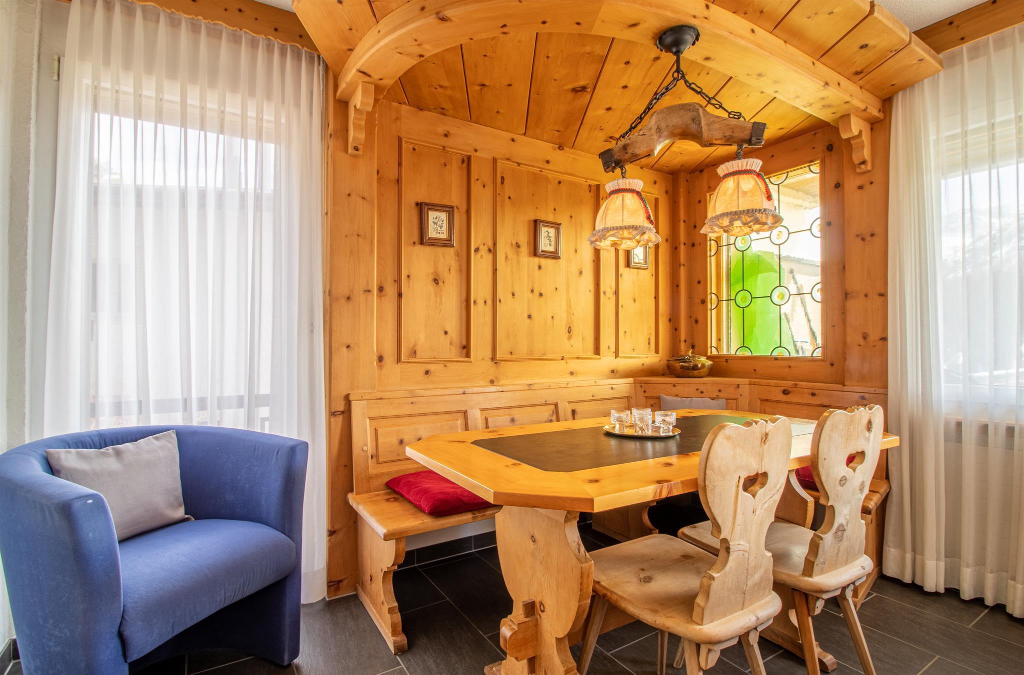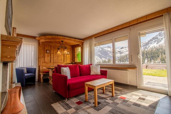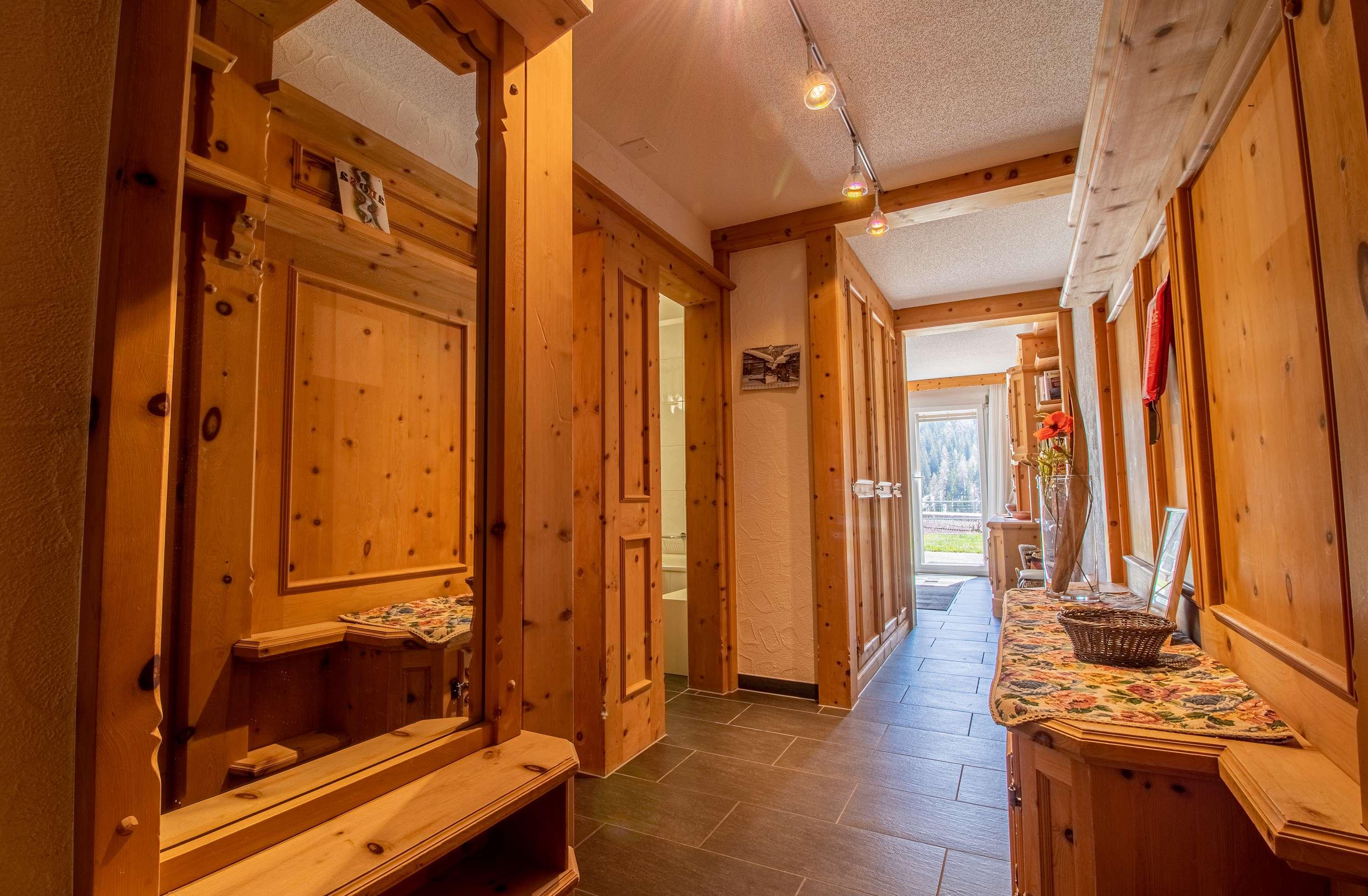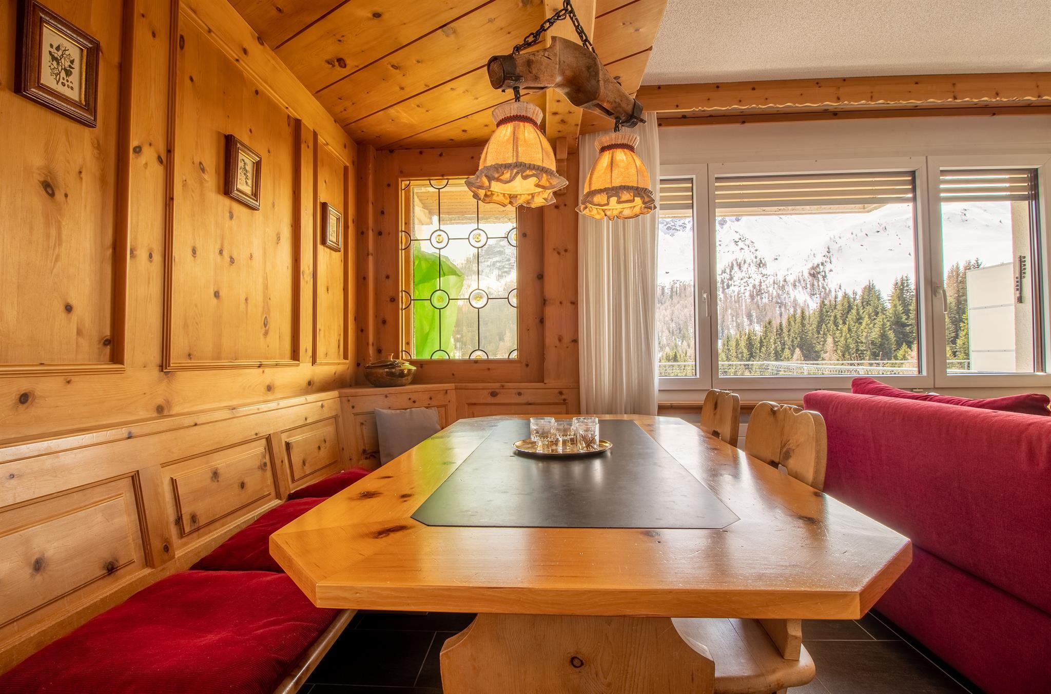 Die Wohnung ist mit Arvenholz eingerichtet und befindet sich in einem Mehrfamilienhaus. Die Wohnung verfügt über einen Kamin;