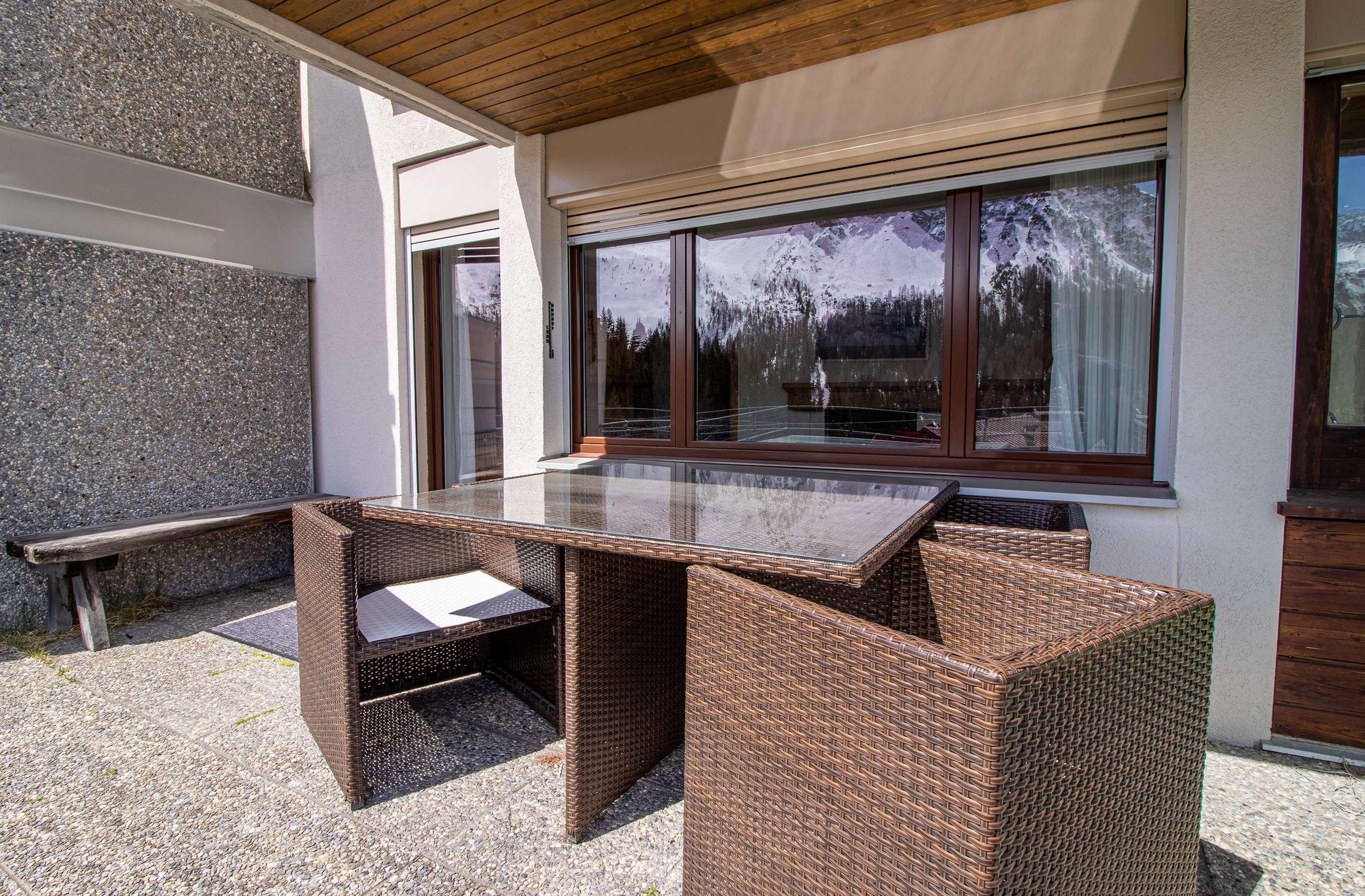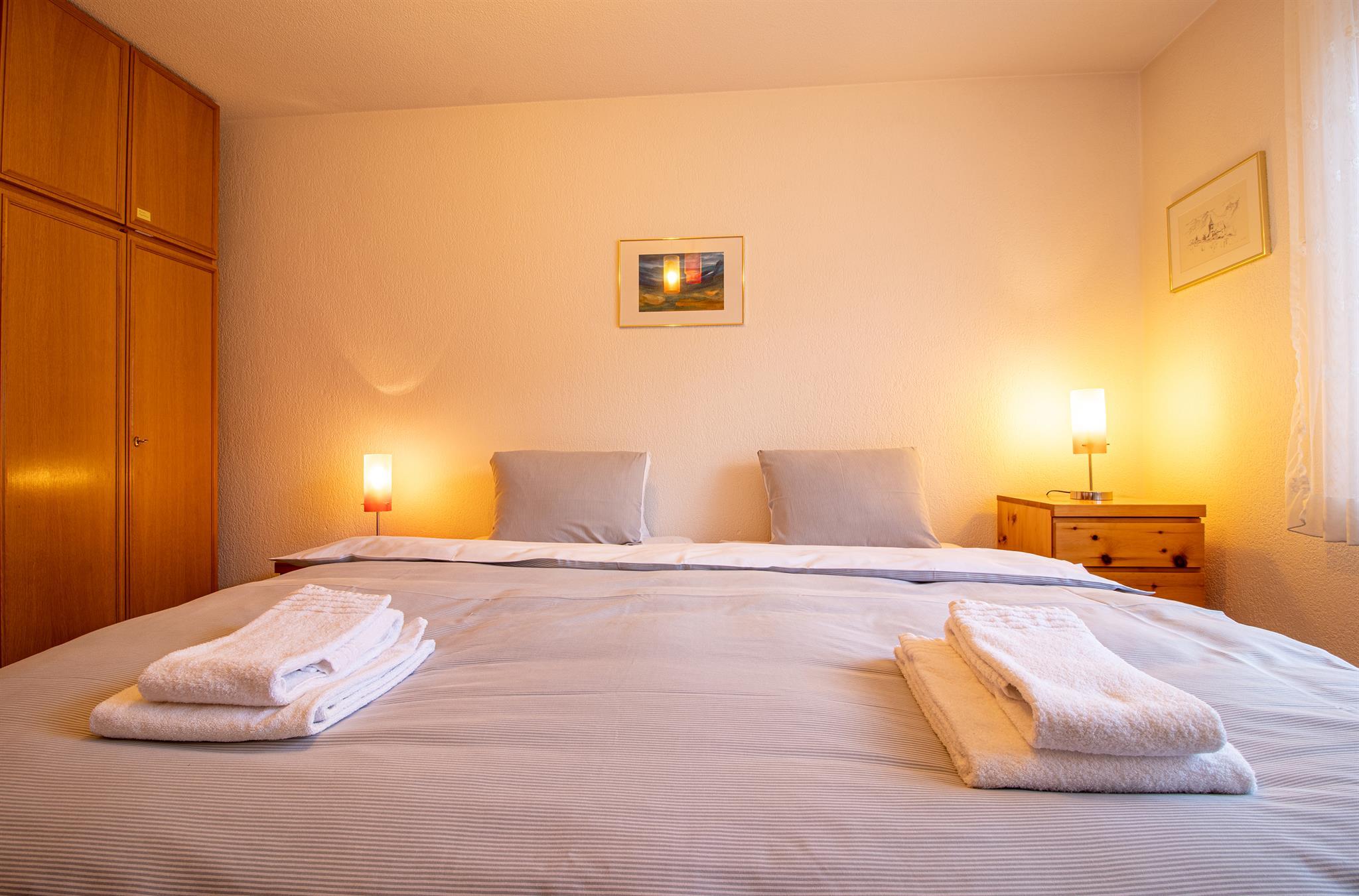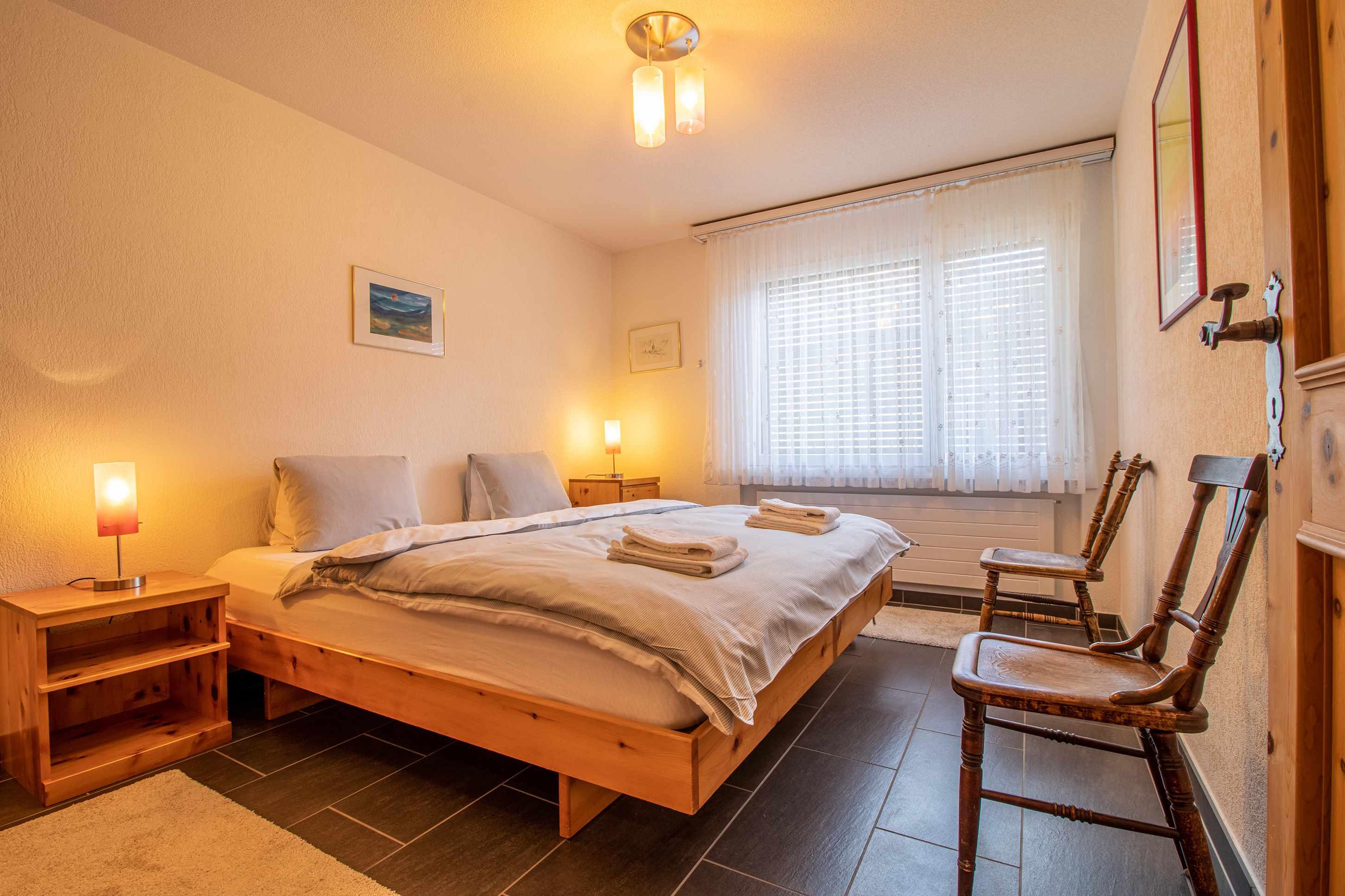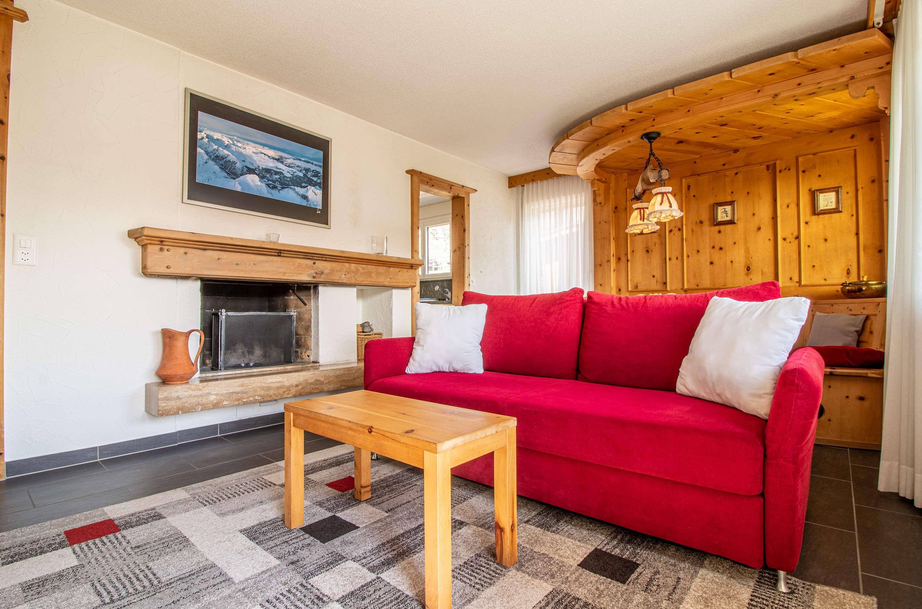 Möbilierte Wohnung aus Arvenholz mit Kamin; 2 Doppelbett im Schlafzimmer; 2 Sofabetten im Wohnzimmer; Bad/WC; sep. Küche mit Geschirrspüler; Gartensitzplatz; Garage; Radio, Telefon, Sat-TV, W-Lan Internet.