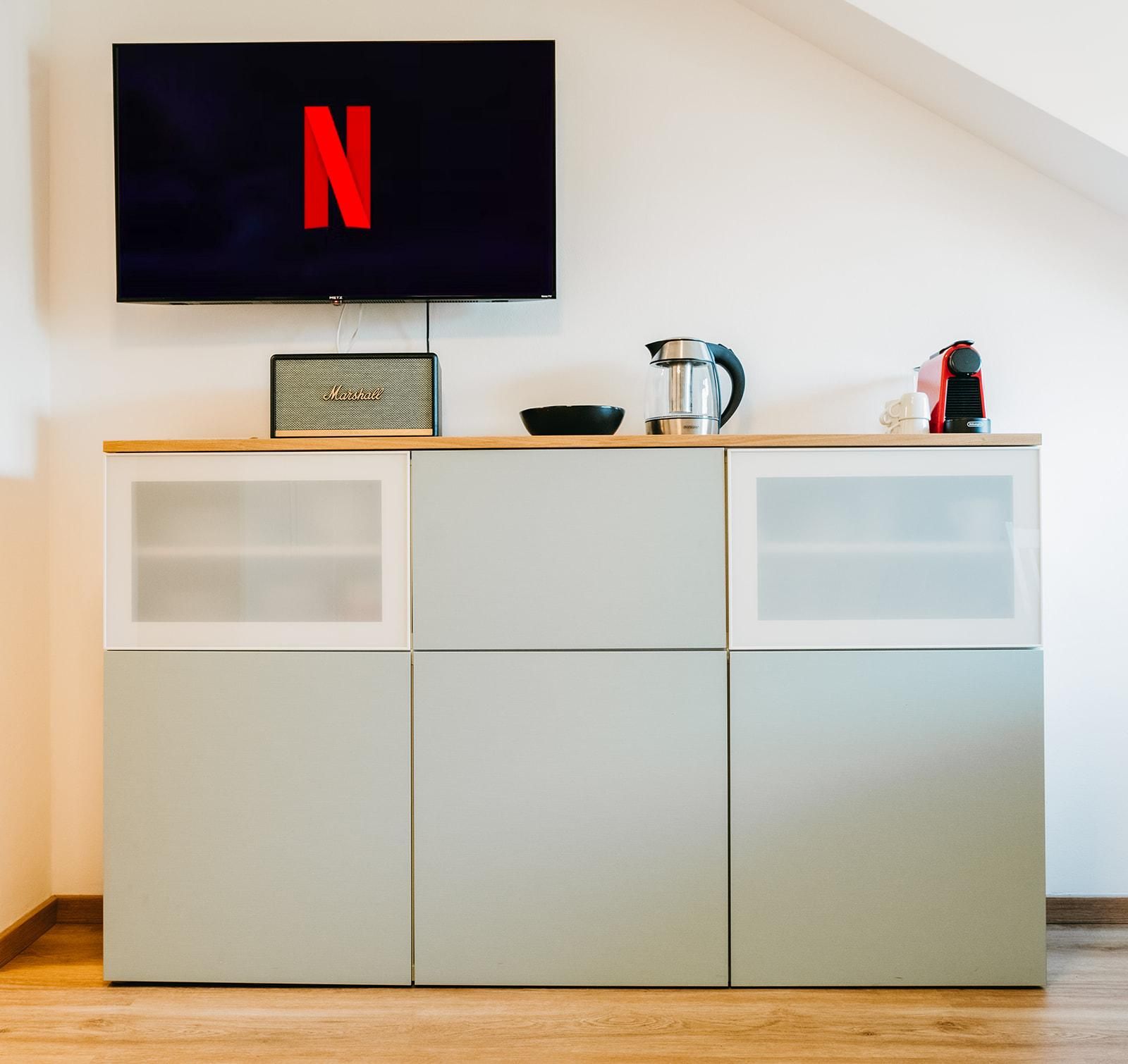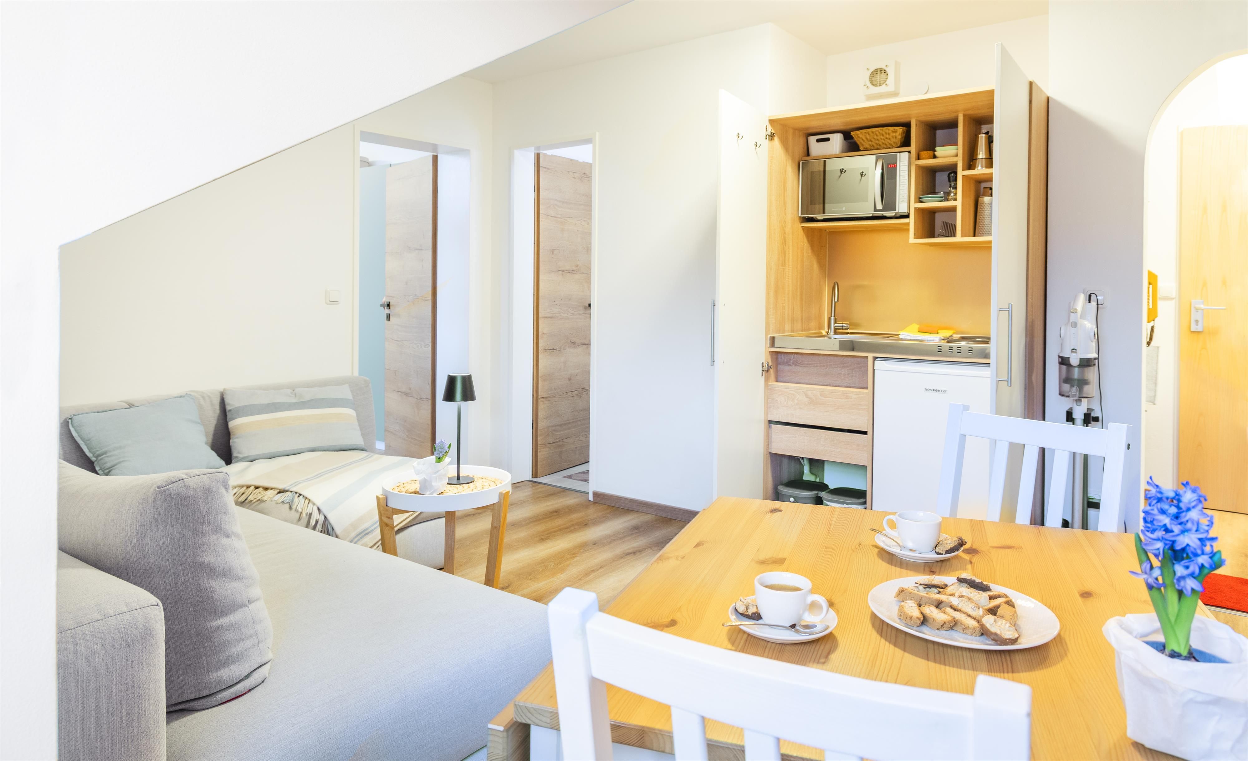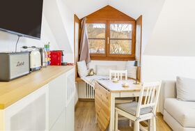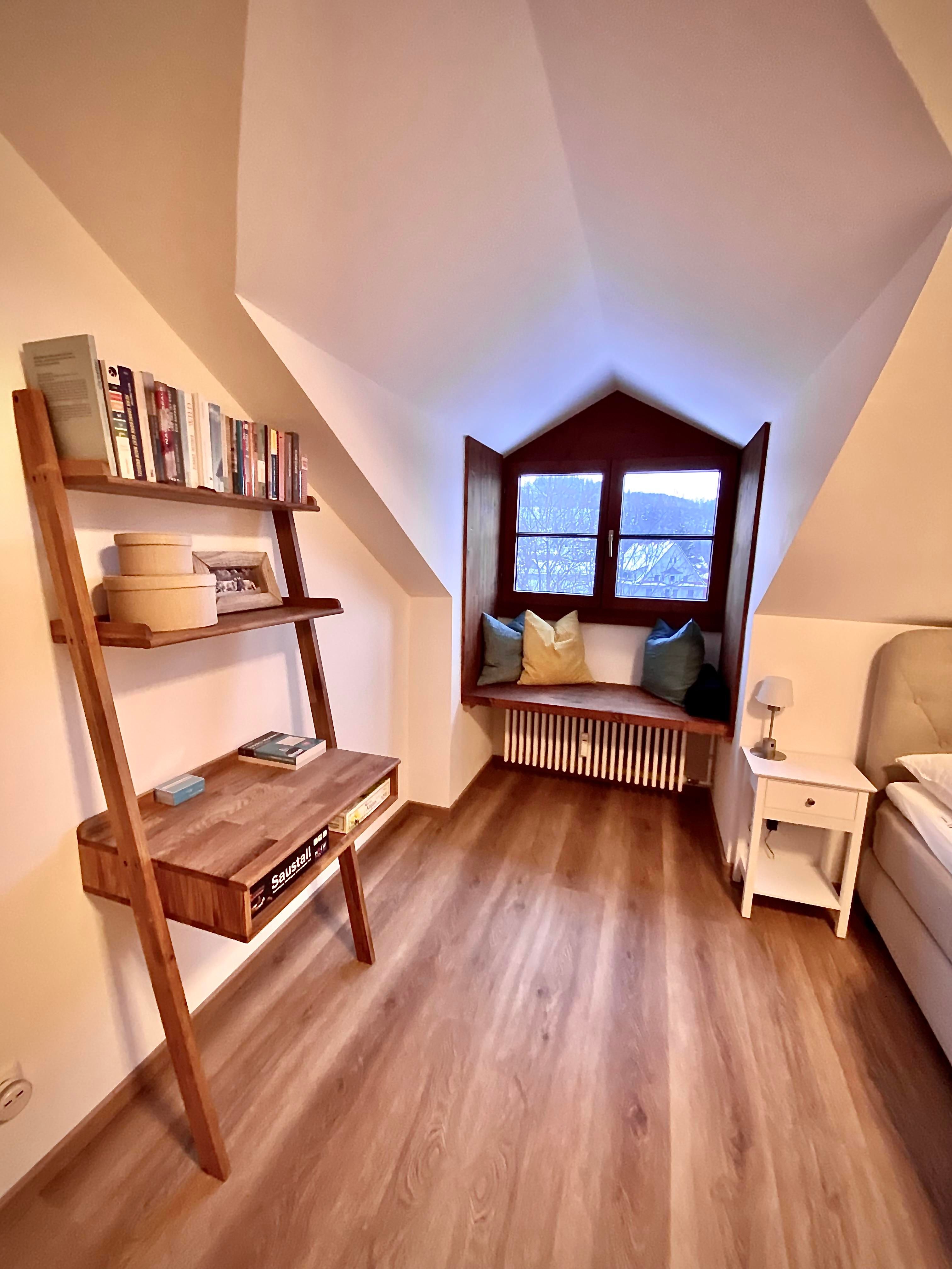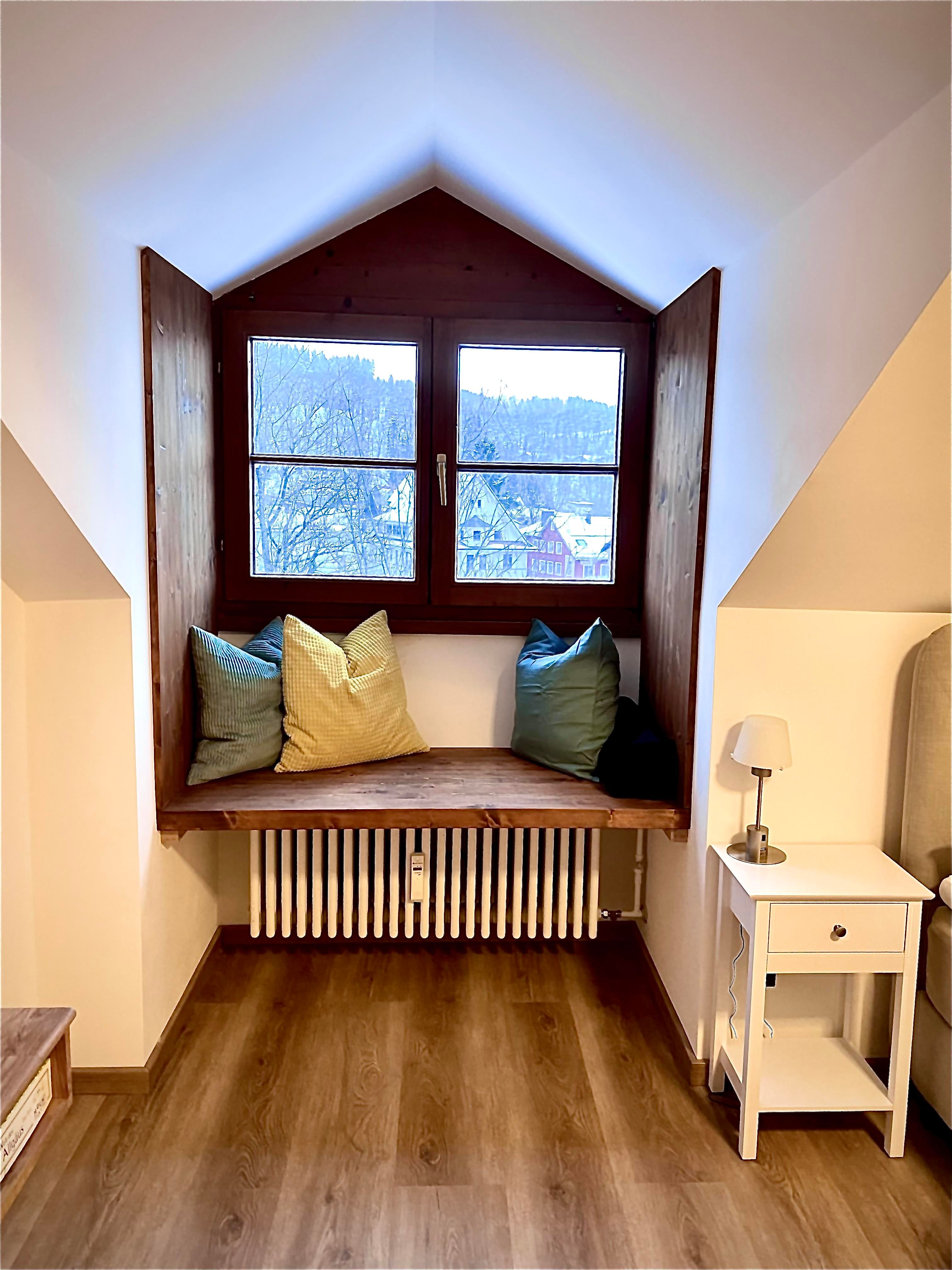 Herzlich Willkommen in unserer gemütlichen Ferienwohnung im Herzen von Immenstadt im Allgäu! Auf 35m² im Dachgeschoss erwartet Sie eine perfekte Auszeit vom Alltag. Die Wohnung verfügt über ein separates Schlafzimmer, in dem Sie sich nach einem ereignisreichen Tag im Allgäu zurückziehen und entspannen können. In den gemütlichen Kuschelkojen am Fenster können Sie Ihren Blick über die Dächer von Immenstadt schweifen lassen und den Tag ausklingen lassen. Das Wohn-Esszimmer ist mit einem gemütlichen Sofa ausgestattet, das bei Bedarf zu einem großen Doppelbett ausgeklappt werden kann und so bis zu zwei weiteren Gästen Platz bietet. Hier können Sie es sich bei einem guten Buch oder einem Film auf dem Flatscreen-TV gemütlich machen. Die Pantryküche ist mit allem ausgestattet, was Sie für die Zubereitung einer leckeren Mahlzeit benötigen. Die Nespressomaschine sorgt für den perfekten Kaffeegenuss am Morgen oder zwischendurch. Das Badezimmer mit seiner tollen Regendusche können Sie sich nach einem Tag voller Aktivitäten im Allgäu erfrischen. Wir laden Sie herzlich ein, unsere kleine, gemütliche Ferienwohnung in Immenstadt im Allgäu zu besuchen und sich vom Charme dieser Region verzaubern zu lassen. Wir freuen uns auf Sie!