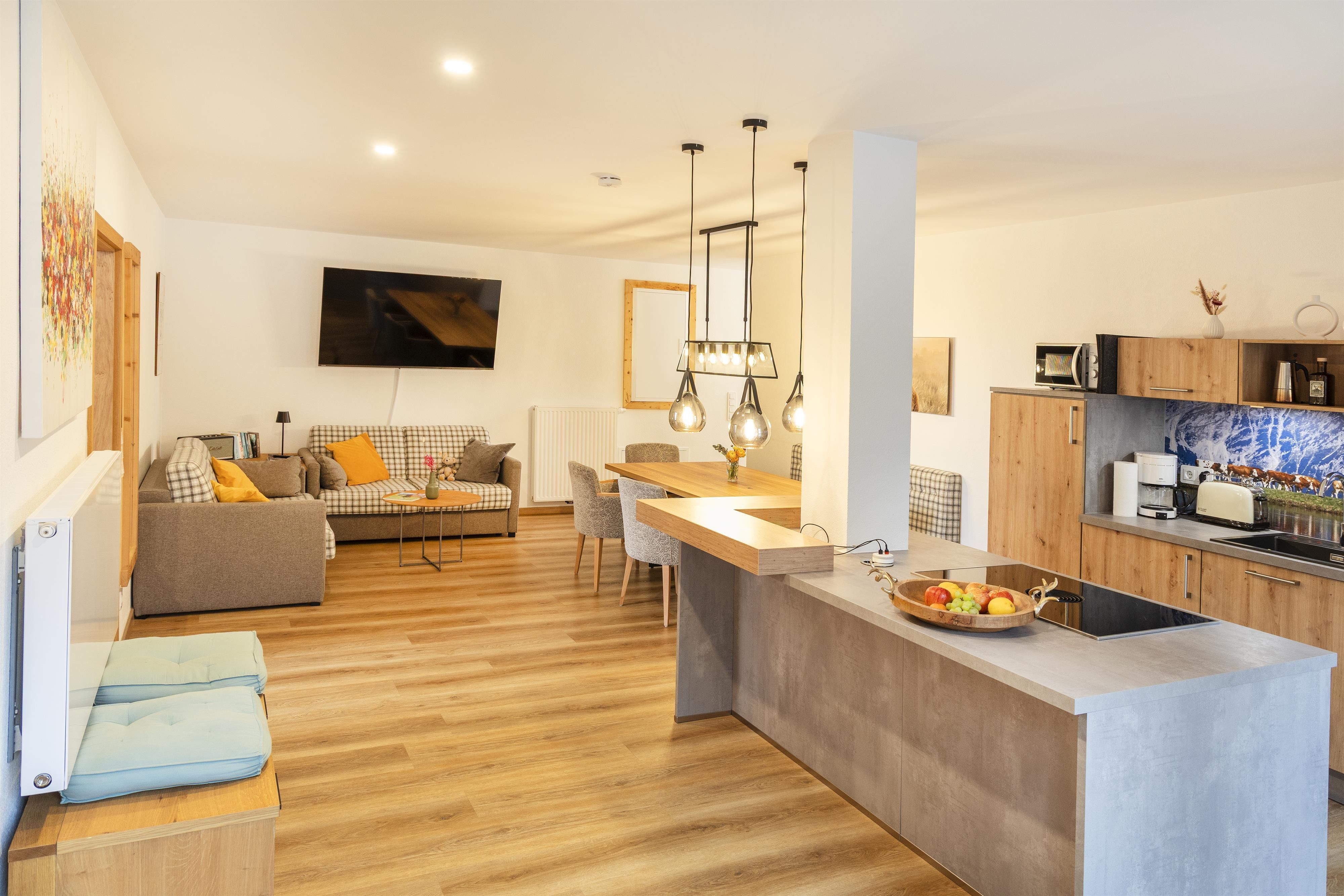 Im Inneren finden Sie in jeder Wohnung eine voll ausgestattete Küche, ideal zum Kochen Ihrer eigenen Mahlzeiten während Ihres Aufenthalts. Entspannen Sie sich nach einem langen Tag des Erkundens der schönen Allgäuer Region in der luxuriösen Whirlpool-Badewanne oder Sauna.