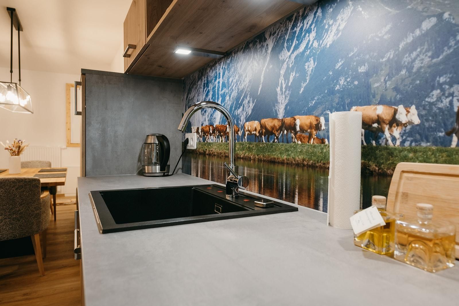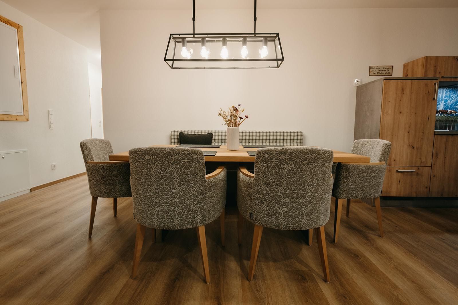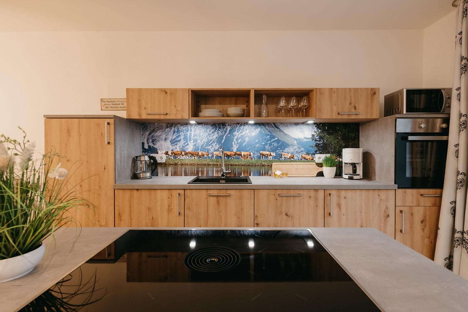 Im Inneren finden Sie in jeder Wohnung eine voll ausgestattete Küche, ideal zum Kochen Ihrer eigenen Mahlzeiten während Ihres Aufenthalts. Entspannen Sie sich nach einem langen Tag des Erkundens der schönen Allgäuer Region in der luxuriösen Whirlpool-Badewanne oder Sauna.