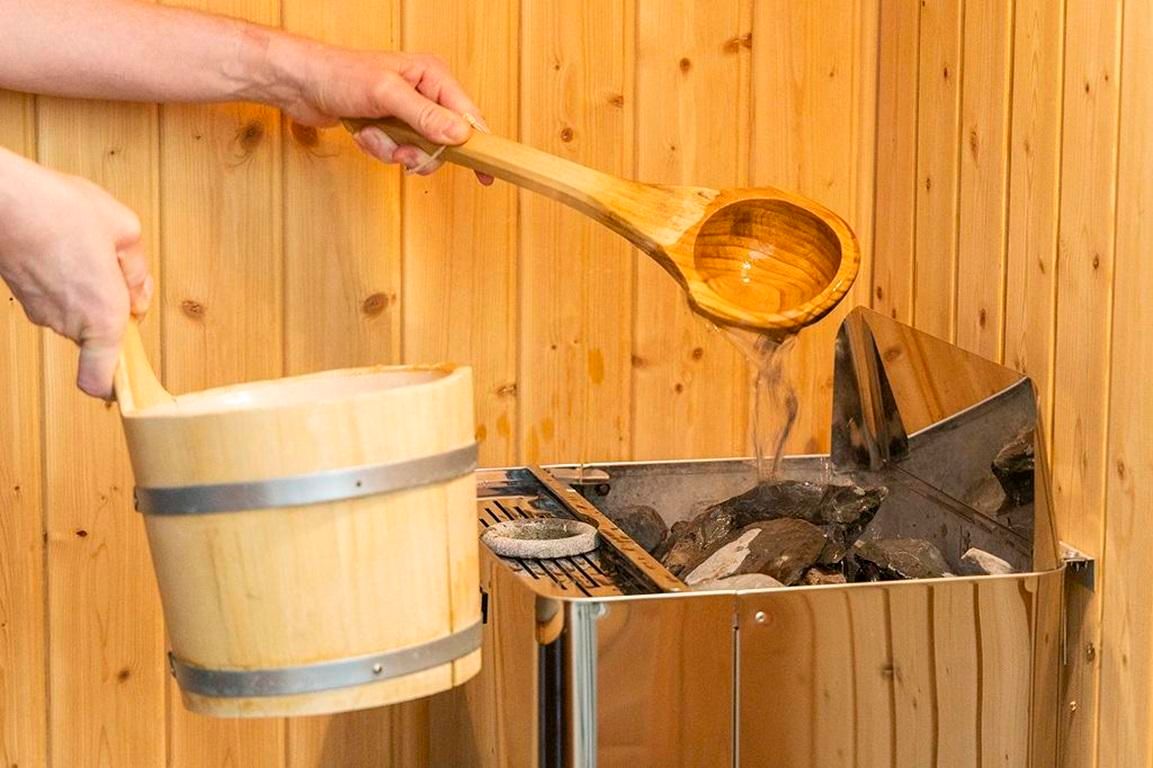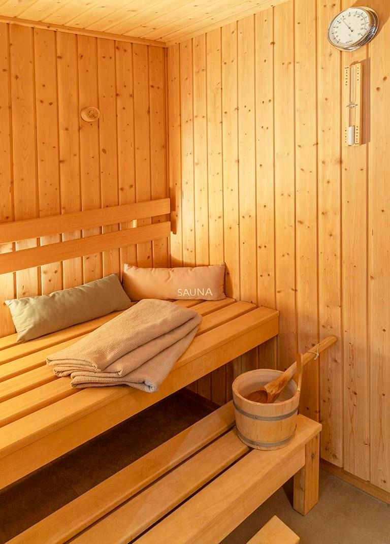Der großzügige Wohn- und Essbereich ist mit einer Eventküche, einem 65 Zoll TV und einer Musikbox ausgestattet. Hier können Sie gemeinsam kochen, essen und entspannen. Die beiden Badezimmer bieten Ihnen die Wahl zwischen einer entspannenden Whirlpoolbadewanne oder einer großen Regendusche sowie einer finnischen Sauna.