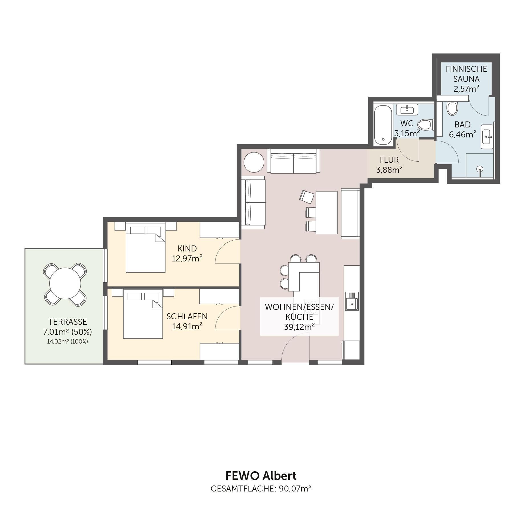 Ob Sie alleine, als Paar oder in einer Gruppe von bis zu sieben Personen reisen, wir haben die perfekte Ferienwohnung für Sie. Wählen Sie zwischen unserer Ein-Zimmer-Wohnung, die Platz für bis zu drei Personen bietet, oder unseren Zwei-Zimmer-Wohnungen, die Platz für bis zu fünf bzw. sieben Personen bieten.