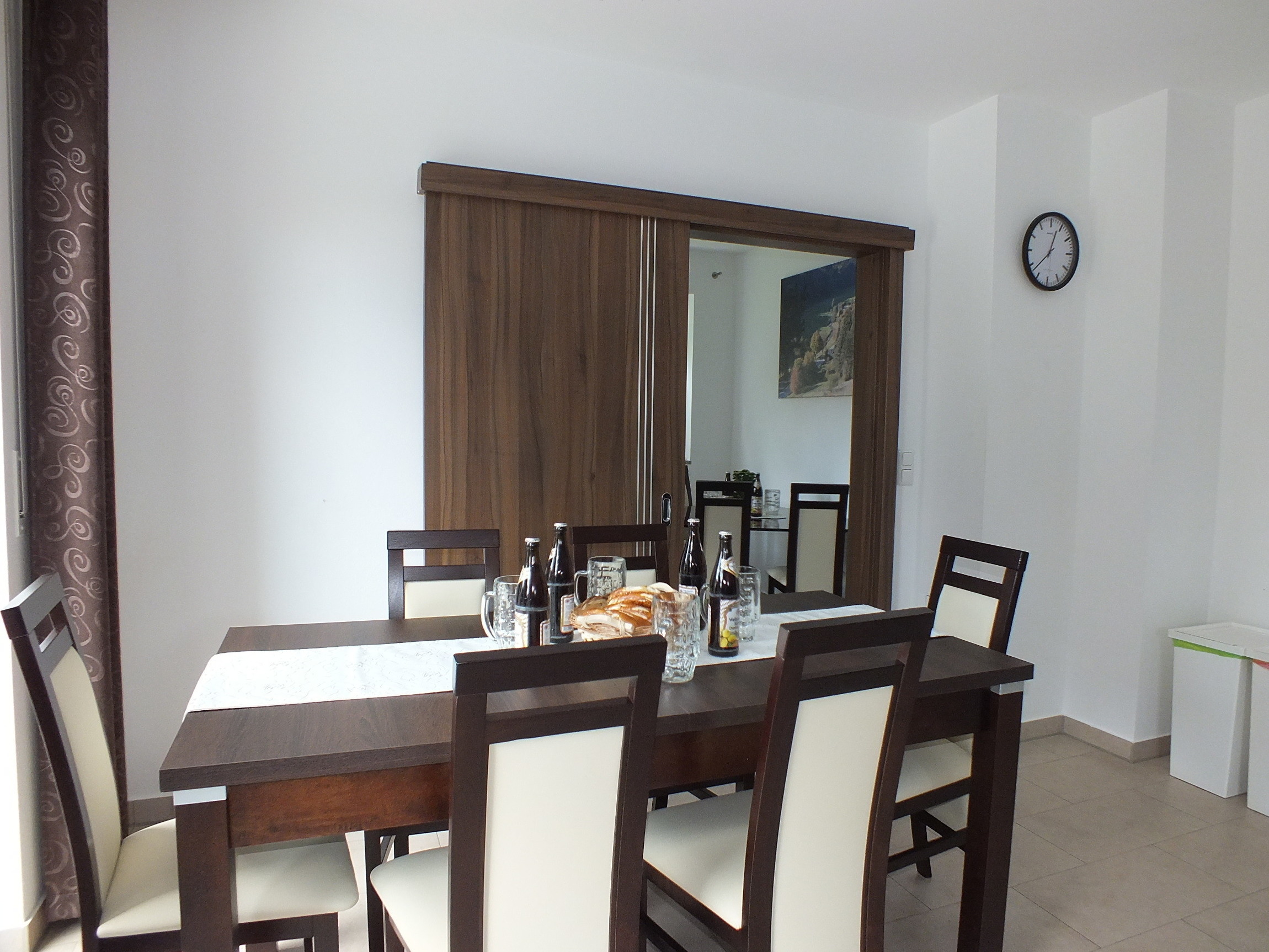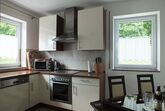 Großzügiges Ferienhaus mit Küche, großem Ess-/Wohnzimmer und möblierter Terrasse. Es gibt vier separate Schlafzimmer und ein Bad mit Dusche/WC und Wanne sowie ein Bad mit Dusche/WC sowie Waschmaschine und Trockner.