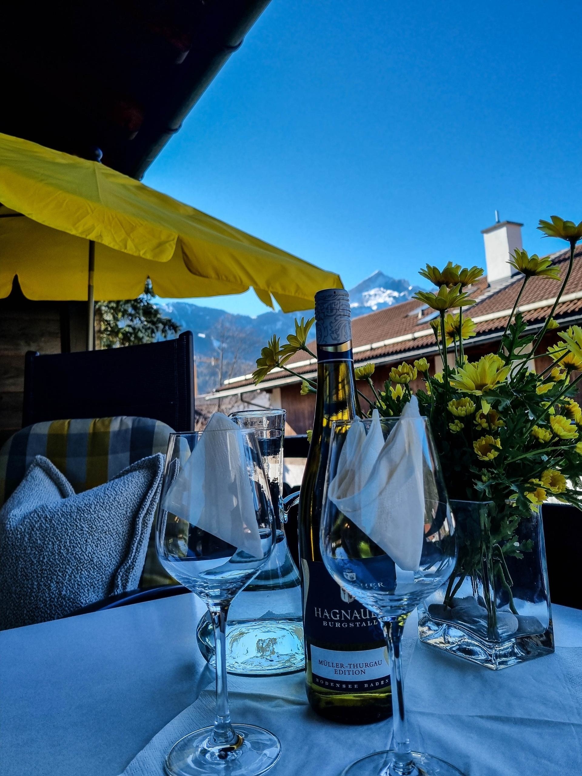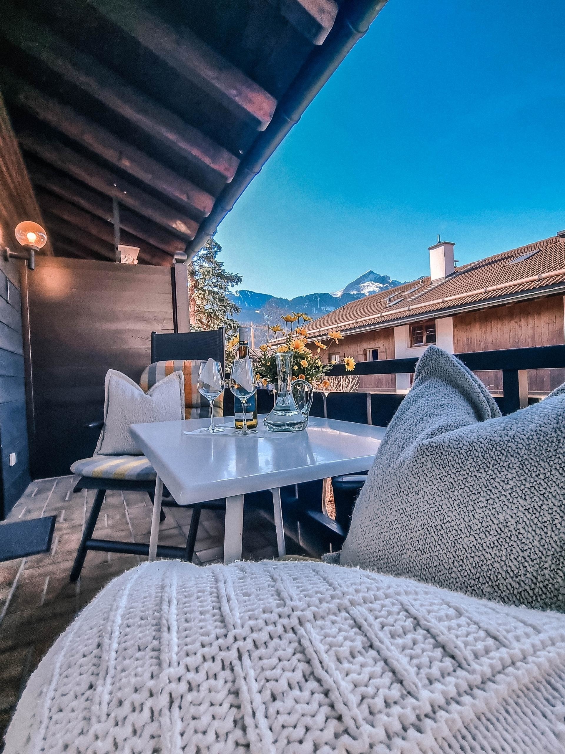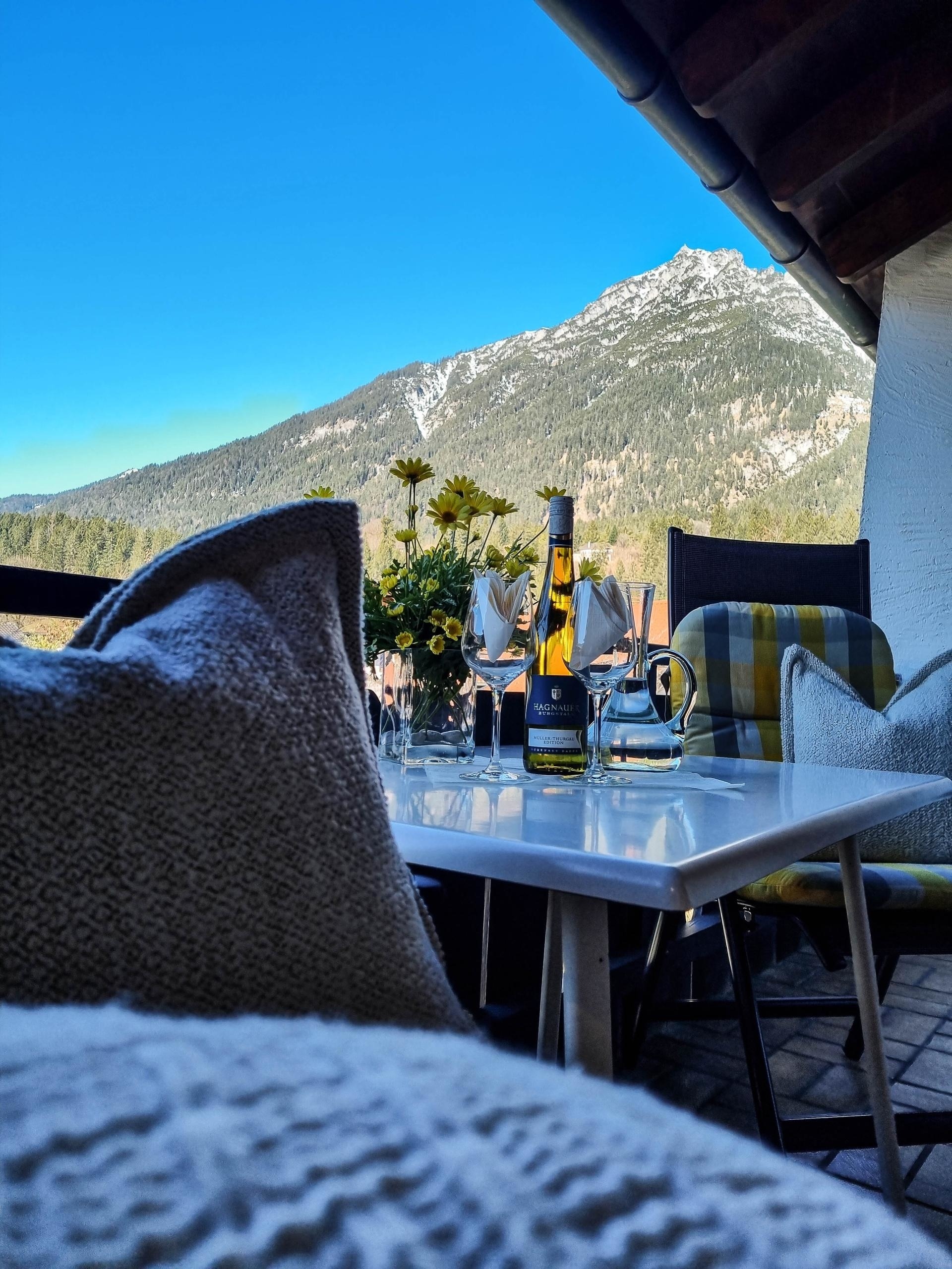 Darüber hinaus können Sie den traumhaften Blick auf den Kramer bei Abendsonne genießen..