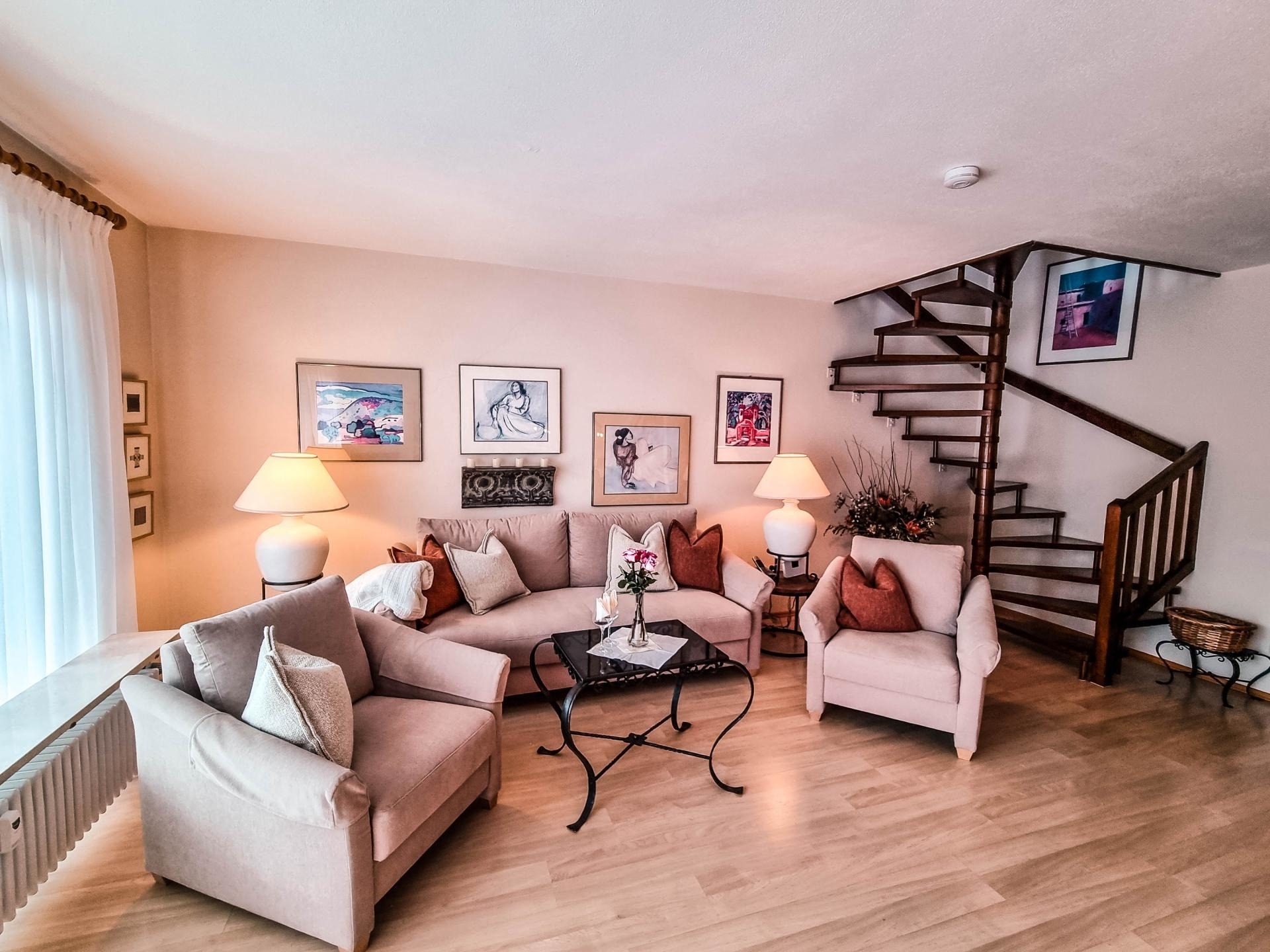 Die gemütliche und hochwertig im bayerischen Landhausstil eingerichtete 1-Zimmer Ferienwohnung liegt in einer verkehrsruhigen Wohnanlage im 1. Obergeschoss.