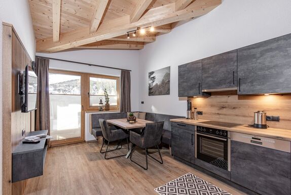 Das Appartement GÄNSEBLÜMCHEN mit ca. 62 m² besteht aus 2 Doppelzimmer mit Flat-TV, 2 Badezimmer mit Dusche/WC und einer geräumigen, vollausgestatteten Wohnküche (Cerankochfeld, Backofen, Mikrowelle, Geschirrspülmaschine, Kühlschrank mit Gefrierfach, Soda Stream inkl. Kartuschen, Kaffeemaschine, Wasserkocher, Toaster uvm) mit Flat-Screen. Genießen Sie das Bergpanorama der Ötztaler Alpen auf unserem möblierten Balkon.
