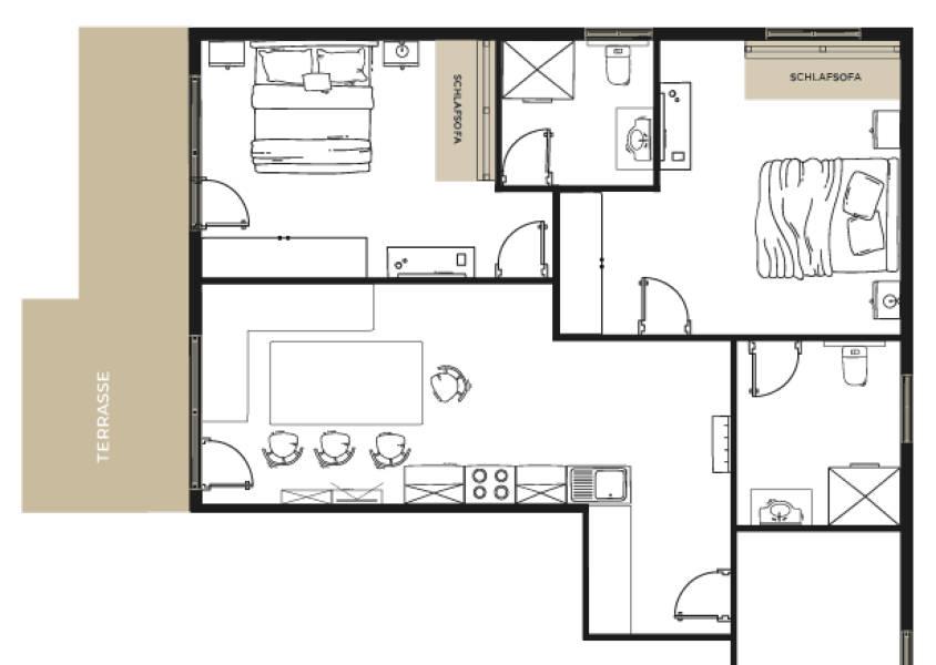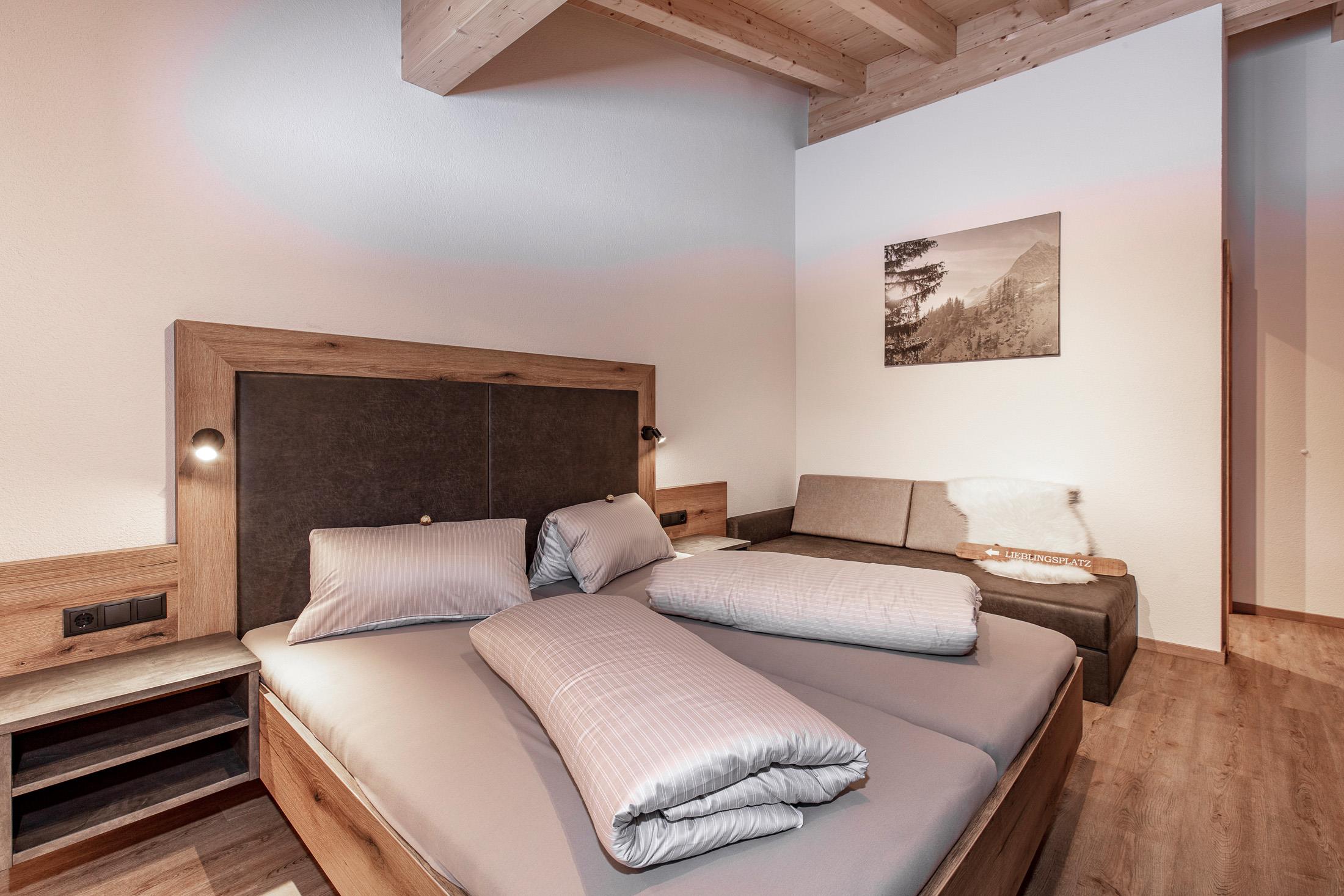 Das Appartement ALPENVEILCHEN mit ca. 72 m² besteht aus 2 Doppelzimmer mit Flat-TV und je einer Schlafcouch (für die 5. und 6. Person),