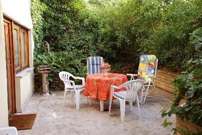 *** Unsere komfortable Ferienwohnung ist für 2-4 Personen eingerichtet. Sie besteht aus großem Wohn- Schlafraum mit Schlafcouch als Doppelbett ausziehbar, 1 Schlafzimmer (Doppelbett mit Bandscheibenmatratzen), volleingerichteter Küche, Bad/Dusche/WC, Terrasse mit Grillmöglichkeit und Gartenmöbeln. Bettwäsche, Handtücher und Tischwäsche sind vorhanden.