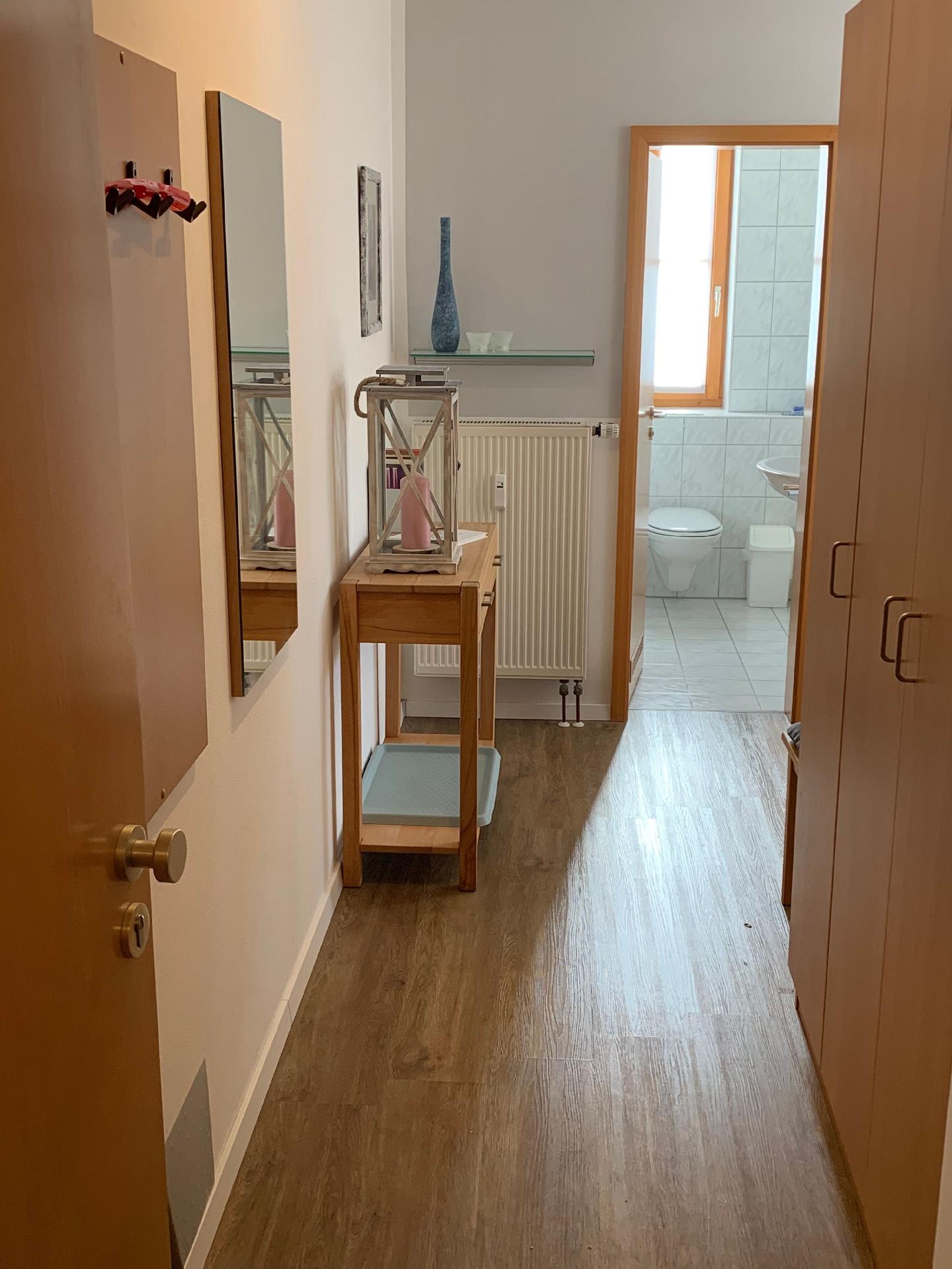 Unser Gemeinschaftsgarten bietet Liegen, einen Grill und einen kleinen Spielplatz.Vom kleinen Balkon haben Sie einen schönen Blick in die Natur und Wald.