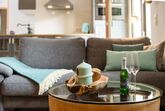 • großer Wohn-Essbereich mit moderner Küche, Essplatz, TV und gemütlichem Sofa