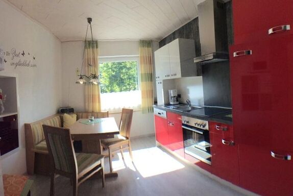 Unsere Ferienwohnung mit 70 qm für 2 - 3 Personen ist mit eigenem Eingang im ersten Stock. Sie besteht aus einem Schlafzimmer mit Doppelbett (getrennte Matratzen) und einem Kinderzimmer mit Schlafsofa, einer komplett eingerichteten Wohnküche, einem Wohnzimmer mit Balkonzugang (Südseite), einem Badezimmer mit Dusche, Badewanne und WC. Von der überdachten Terrasse (ca. 50 qm) hat man einen wunderschönen Blick auf Burg/Schloß Prunn. Eine abgeschlossene Fahrradabstellmöglichkeit und ein Parkplatz für Ihr PKW stehen kostenlos zur Verfügung. Unsere Nichtraucherwohnung verfügt über kostenfreies W-Lan, Sat-TV und Radio. Handtücher, Bettwäsche und Geschirrtücher werden während Ihres Aufenthalts bei uns gestellt.