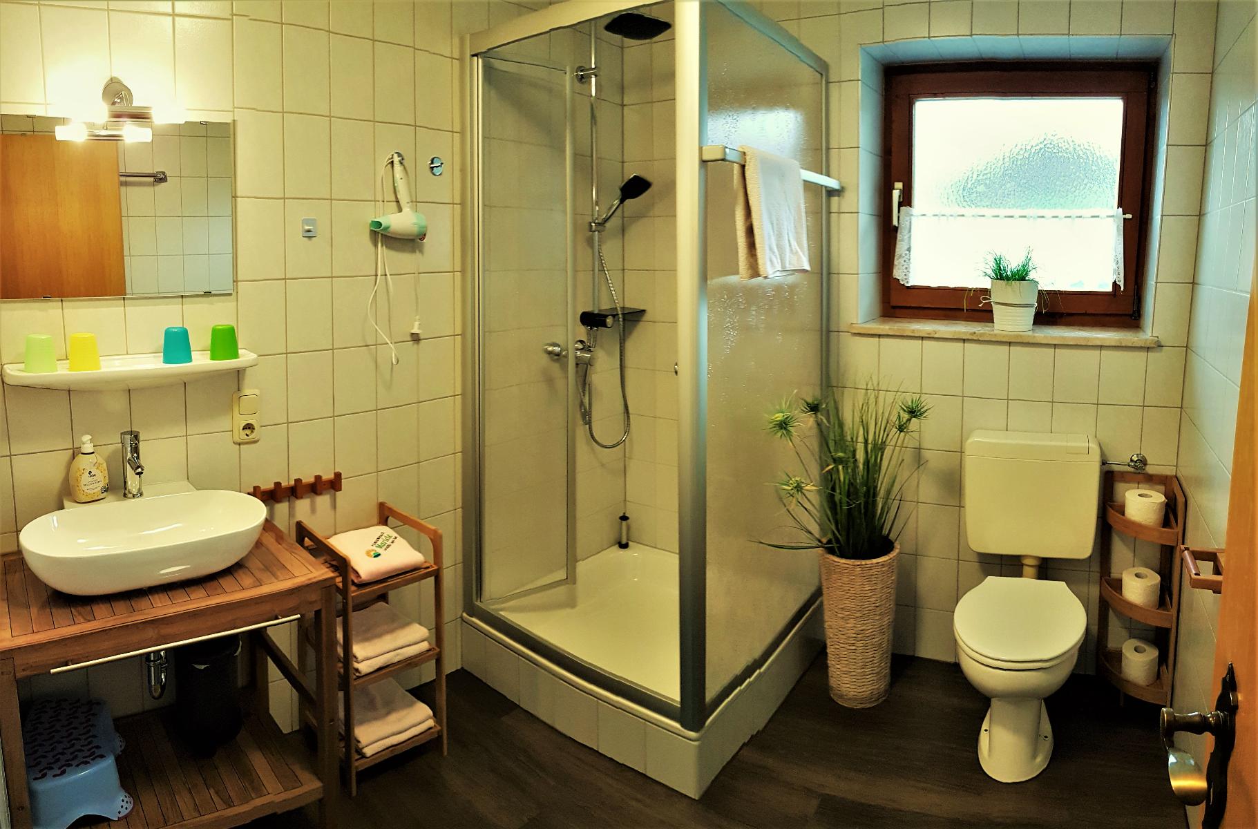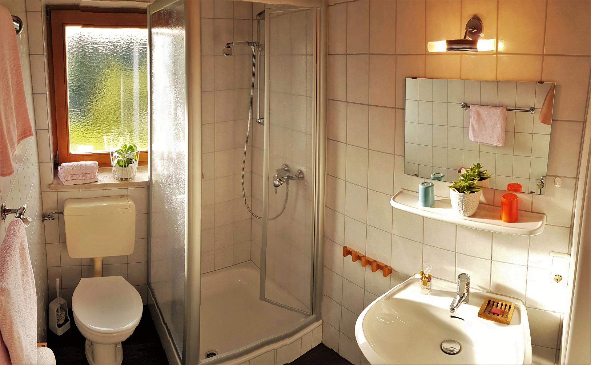 Das geräumige Badezimmer mit Dusche/WC und Fön rundet das Gesamtbild ab.