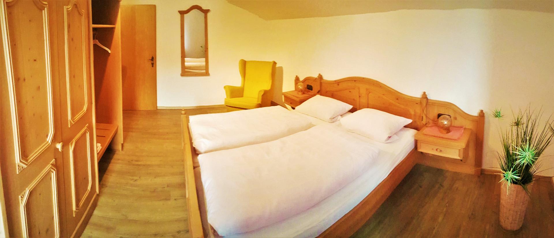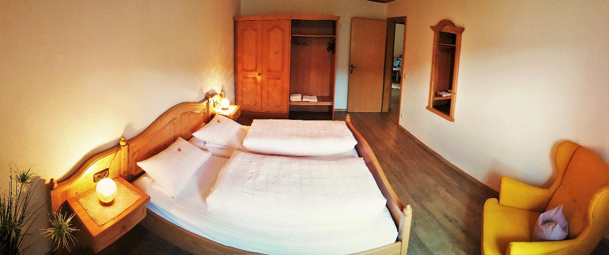 Die Ferienwohnung verfügt über 2 getrennte Schlafzimmer mit jeweils einen Doppelbett. Im großen Schlafzimmer befindet sich eine zusätzliche Sitzgelegenheit.