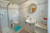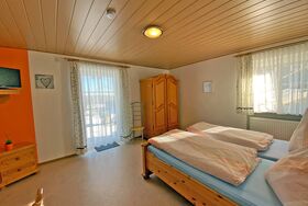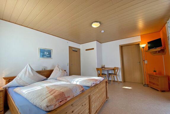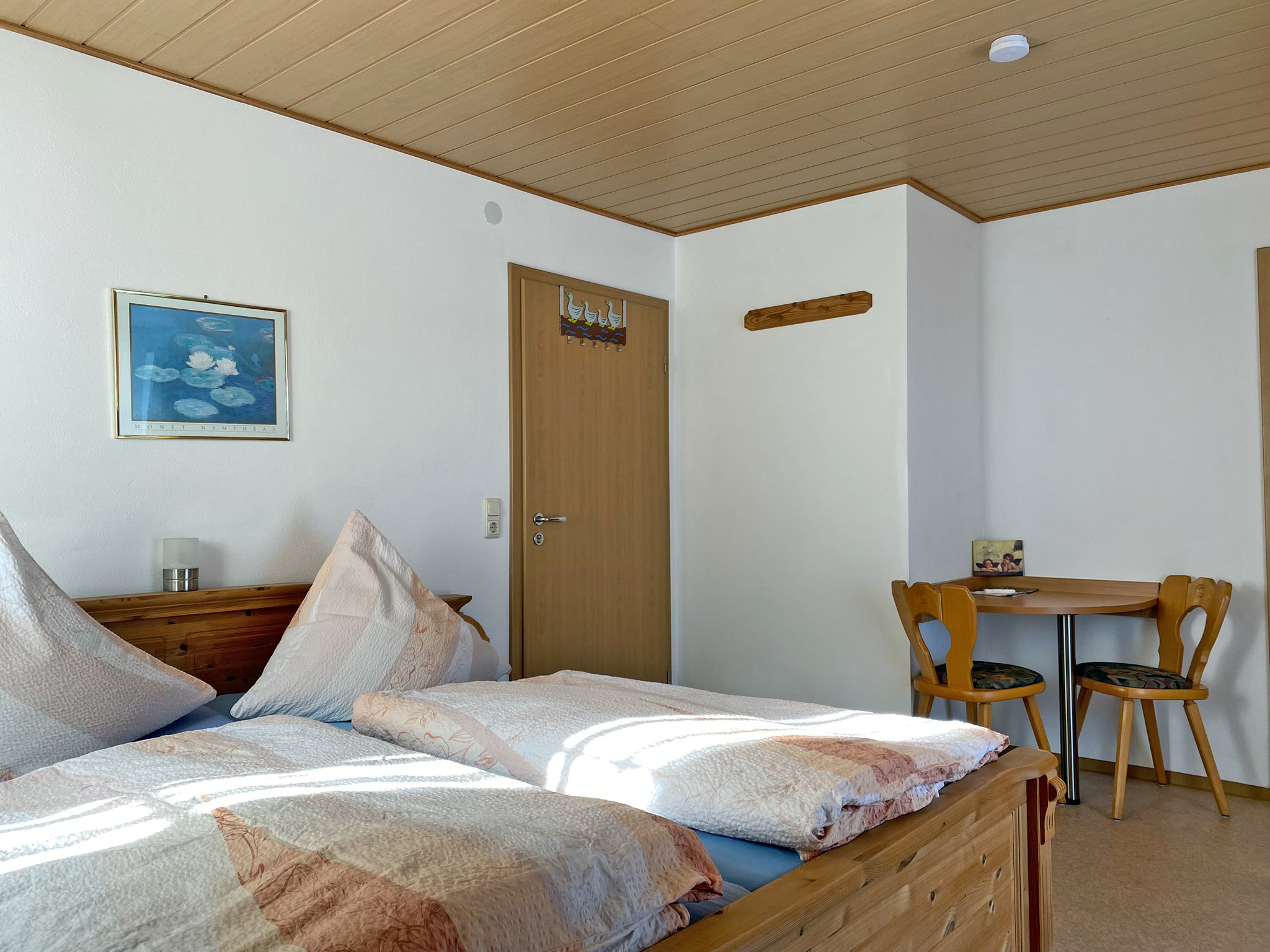 Unser gemütlich eingerichtetes Doppelzimmer mit 20qm bietet ihnen viel Platz zum Entspannen. Das Schlafzimmer ist ausgestattet mit einem Doppelbett, Fernseher und einem geräumigen Kleiderschrank, der ausreichend Platz für ihre Garderobe ermöglicht. An das Zimmer angeschlossen ist ein großzügiges, helles Bad mit WC, Dusche, Handtüchern, Föhn und einem großen Fenster. Die an das Schlafzimmer angeschlossene Terrasse lädt mit bequemen Gartenmöbeln zum verweilen ein.