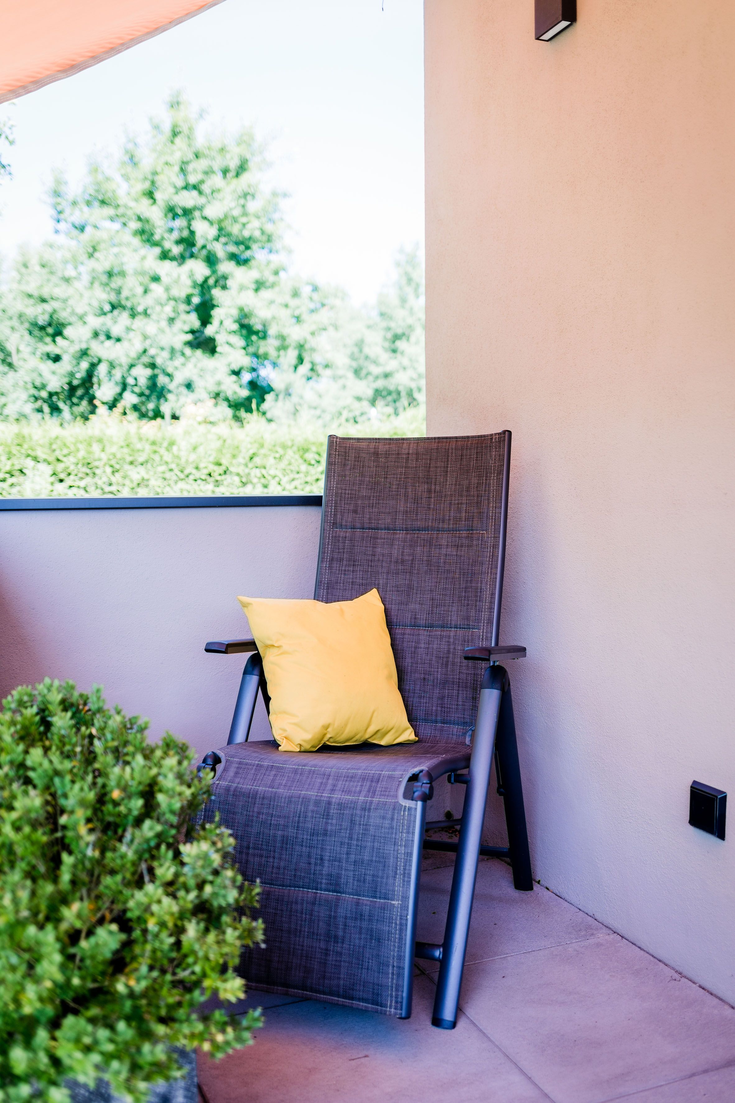 Bei schlechtem Wetter steht ein überdachter Aussensitz zur Verfügung.