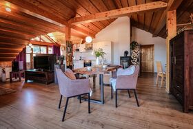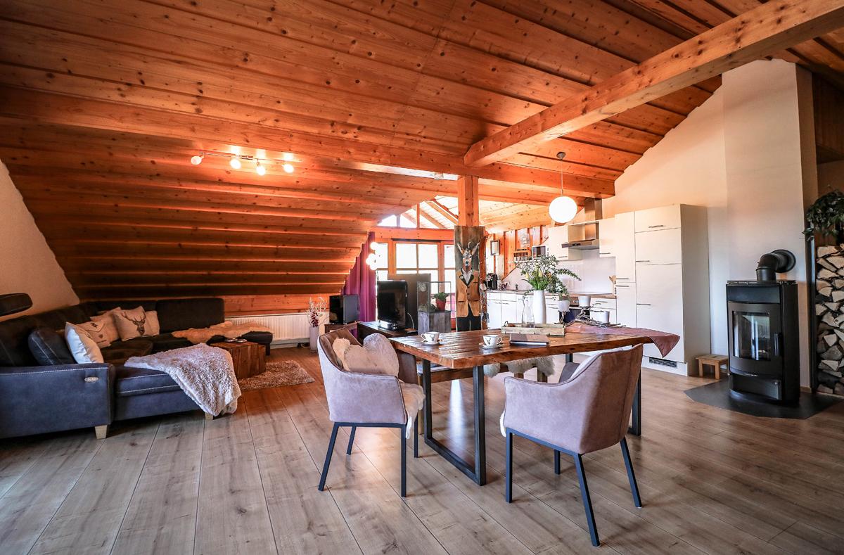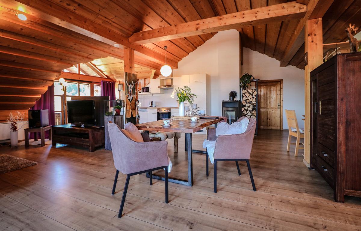 Loft Wohnung im Chalet Stil im 2. Stock auf ca 90 qm mit Schlafzimmer, Bad und offener Wohnbereich mit Küche - Essen - Wohnen - SPA mit Infrarot-Kabine.